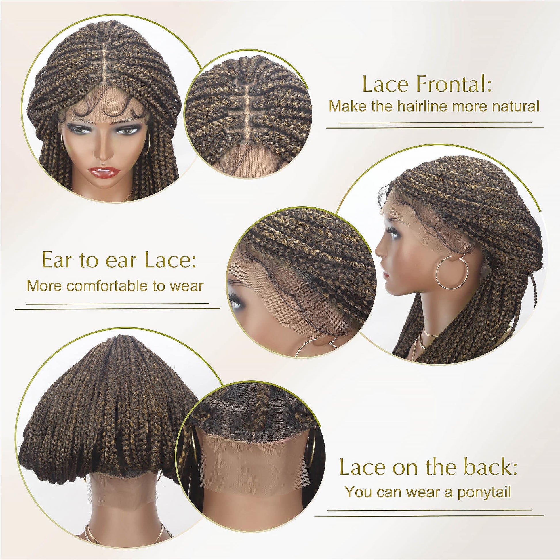 - 【Takes a Few Minutes to Wear】: Fully hand braided Full lace knotless box braided wigs easy install and looks like you've been styling for hours. For busy ladies, this is the best way to save time, away from headaches and backache. This knotless box braided lace wig give you a unique style and you will get compliments every time you wear it! All braided lace front wigs are hand braided by professional styling designer, every braids is neatly and tightly done, natural looking as your real hair.