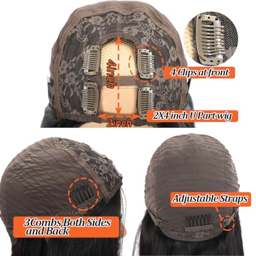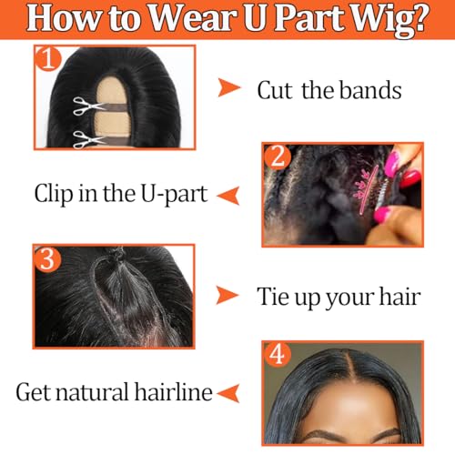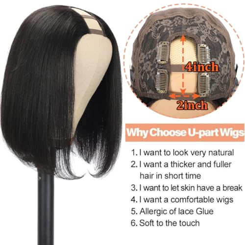 - 2.U Part Bob Wig Hair Quality: 10A grade Brazilian remy human hair, natural Black color,Can be dyed and bleached.Soft and healthy texture, no shedding and tangle Free. Natural And no Bad Smell,150% density,Invisible U Part human hair wigs With Clips