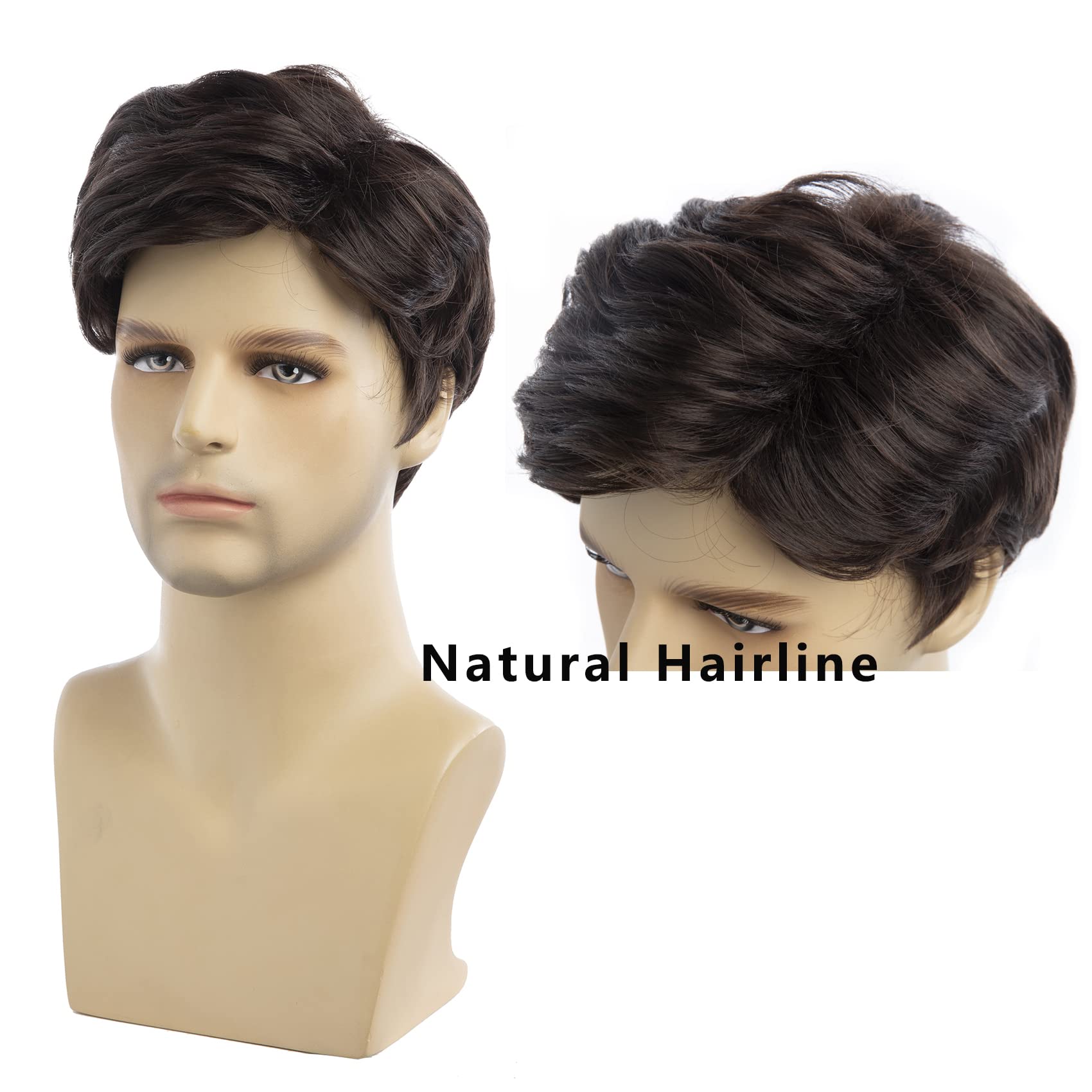 Baruisi Men Wigs Short Brown Wig Synthetic Heat Resistant Natural Halloween Cosplay Hair Wig