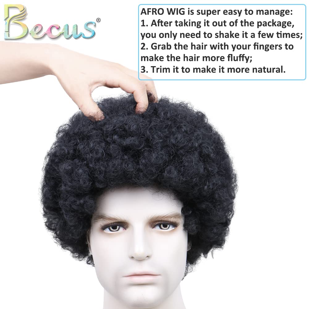 BECUS Afro Wigs for Black Men Short Afro Wigs Men 70's 80's Disco Funny Cosplay Afro Wig African American Full Synthetic Wig (Natural Black #1B)