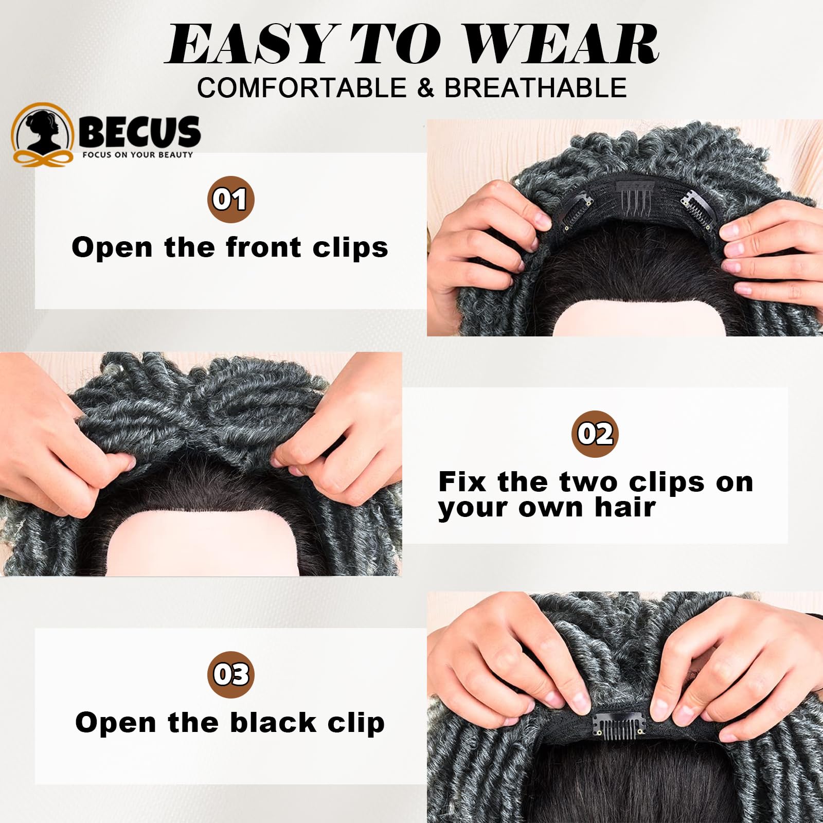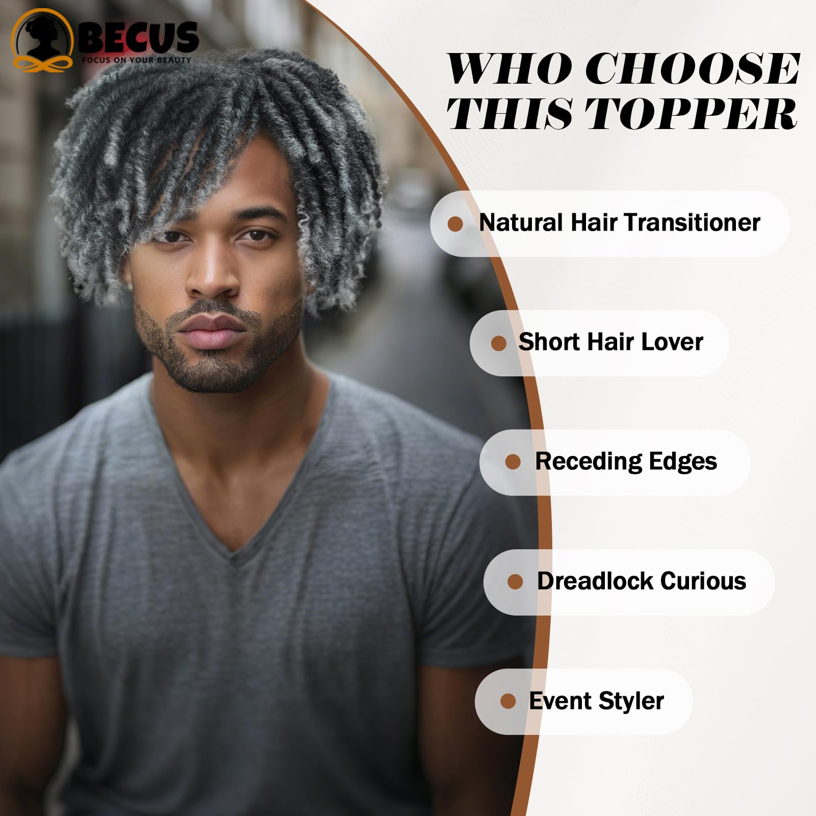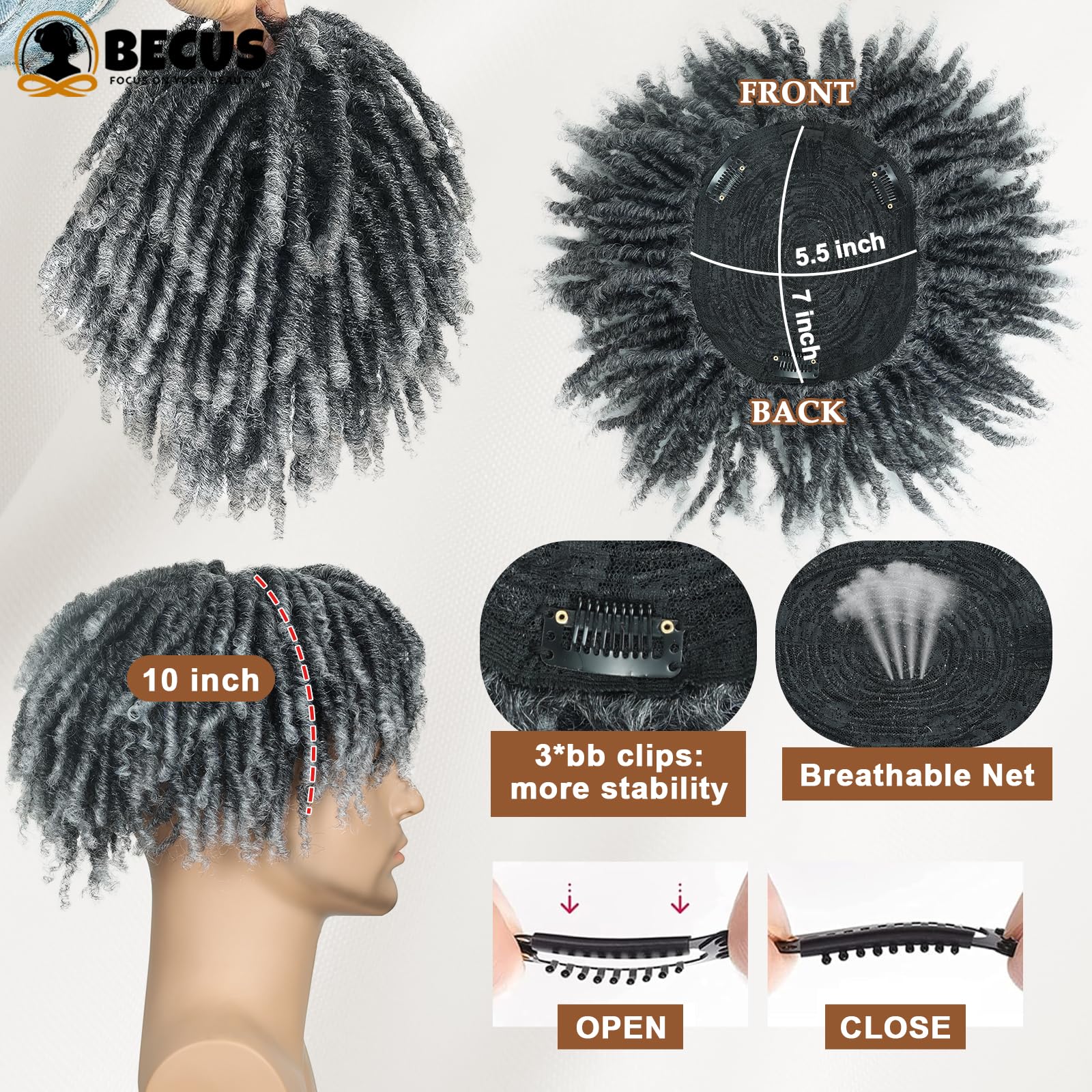 BECUS Hair topper Dreadlock Toupee Afro Fake Dreads Dread Lock Topper Toupee Hair for Men and Black Women Braids Braided Dreadlocks Afro Curly Synthetic Hairpieces Party Halloween(Gray)