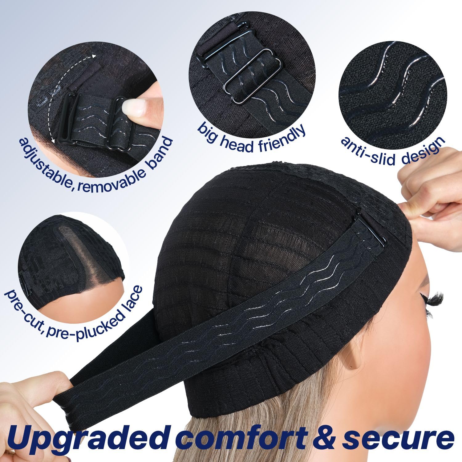 - 【Glueless Top Comfortable Cap】:New 3D Dome Cap: Full Elastic of the Cap.no clips or combs Inside makes the wig more comfortable.Medium Cap Size (21.5-22.5Inch) Medium size flexible cap with a remoable elastic band makes the cap size adjustable and More secure and less likely to fall off