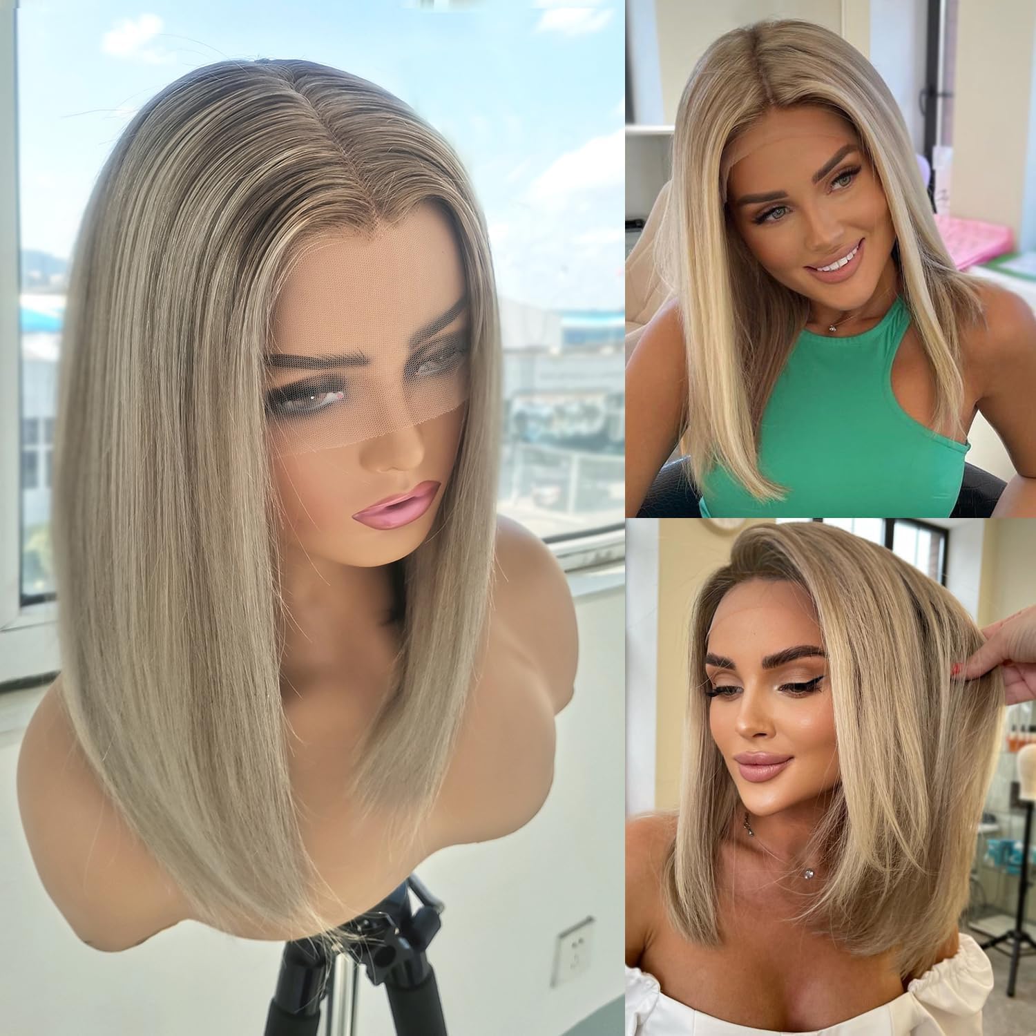 - Ash Blonde Ombre Human Hair wig:Luxurious short straight blonde wig with natural hairline, silky straight texture, soft and elastic, healthy and odorless.Balayage wig human hair is both economical and more affordable, 10-24 inches can be selected according to their own hair length, perfect match. Very healthy and shiny, clean and comfortable, can be worn for a long time