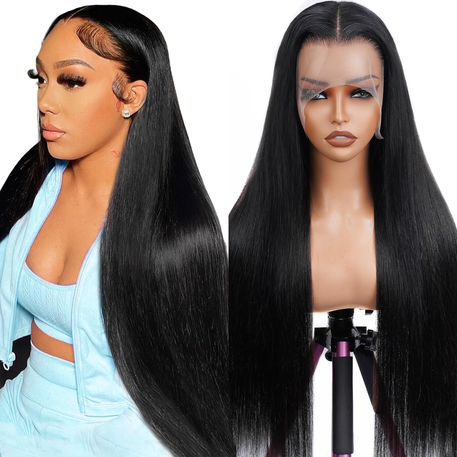 CabeDuck 34 Inch Straight Wigs Human Hair 13x4 HD Transparent Lace Front Wigs for Women Straight Lace Frontal Wigs Pre Plucked Natural Color