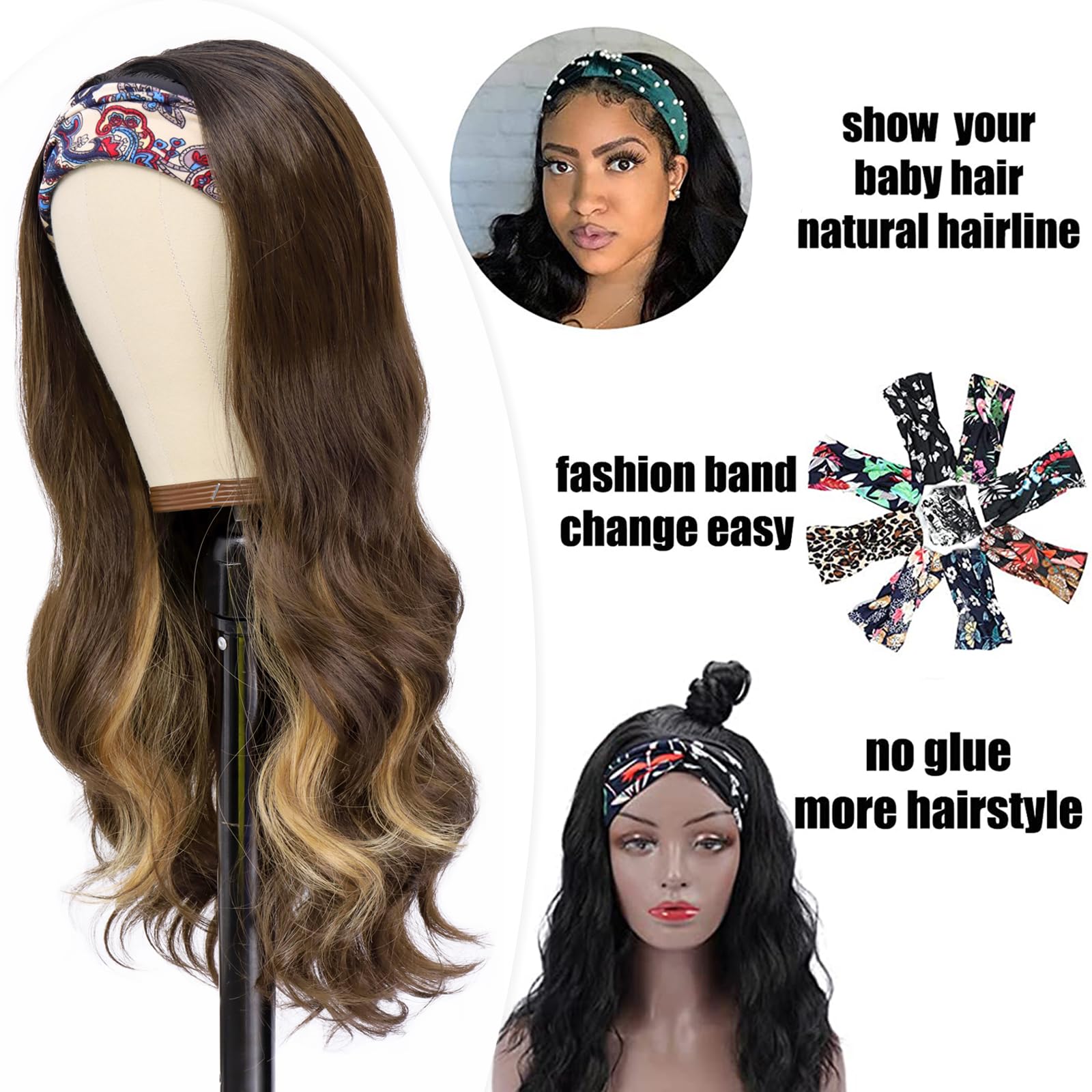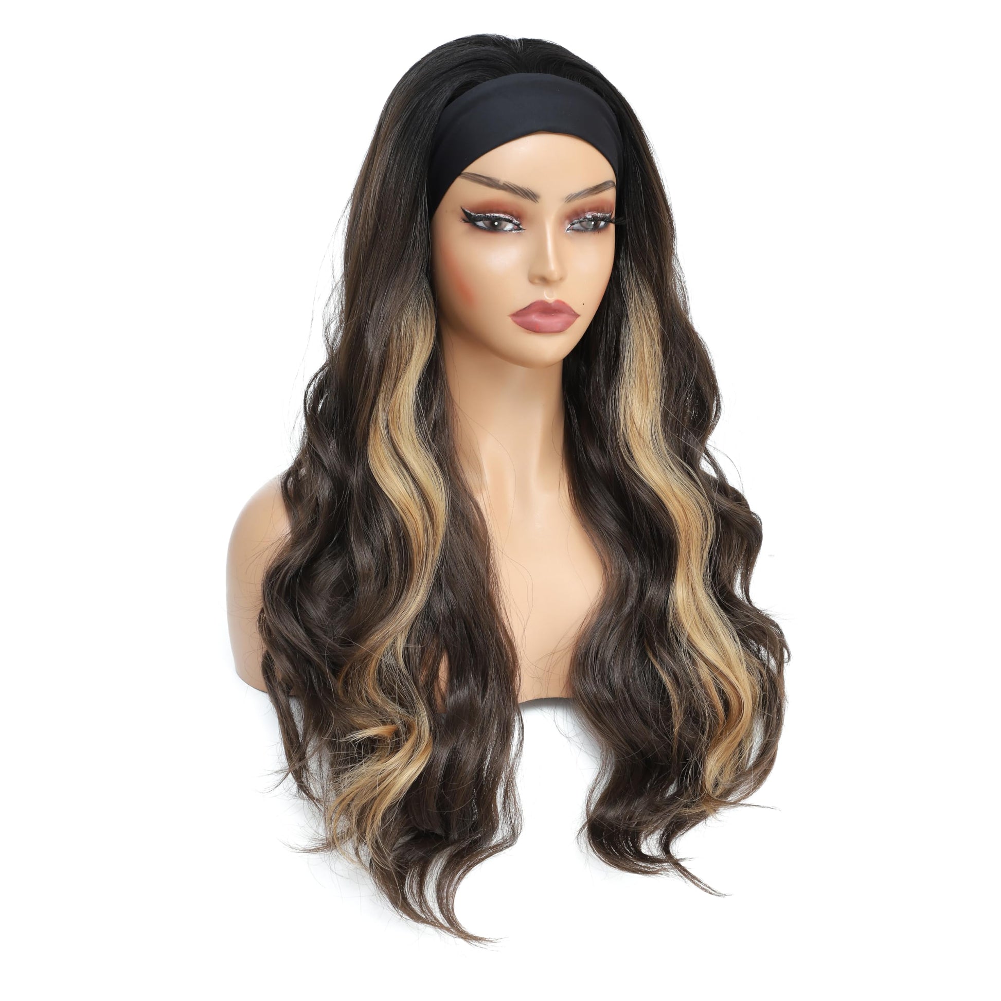 Colorful Queen Glueless Headband Wig Blonde Highlight Body Wave Headband Wigs for Women 26 Inch Long Wavy Wig Natural Looking Synthetic Heat Resistant Fiber Wig for Daily Party Use