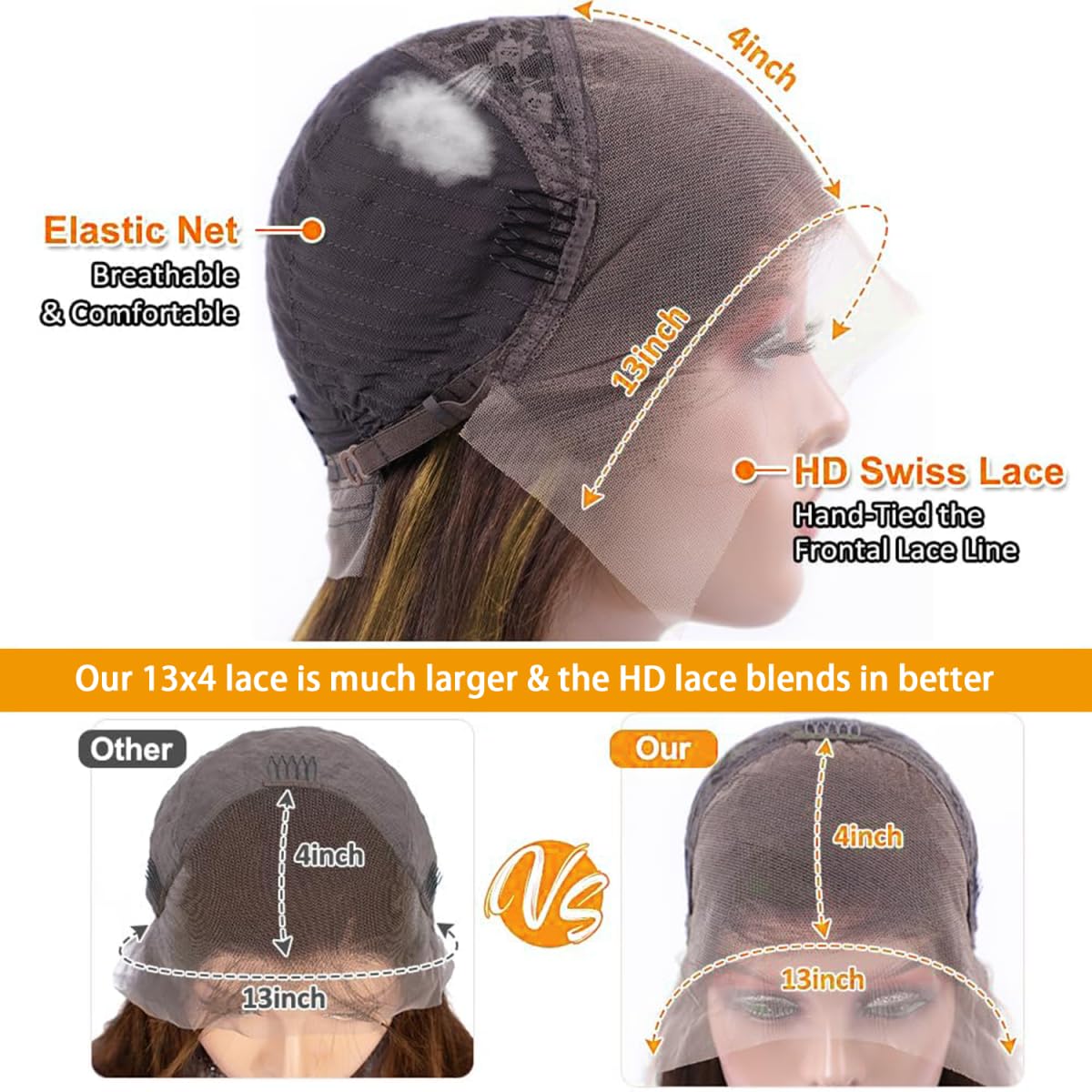 - HD Transparent Lace Front Wigs Human Hair : Highlight Lace Front Wig Human Hair Deep parting space, Ombre Lace Frontal Ensures That Our Honey Blonde Wig Can be Parted into Middle Part, Side Part or Free Part, Can do Half up Half down Styles, Ponytail, Bun, Can be Dyed, Bleached, Straightened and Restyled as You Like.