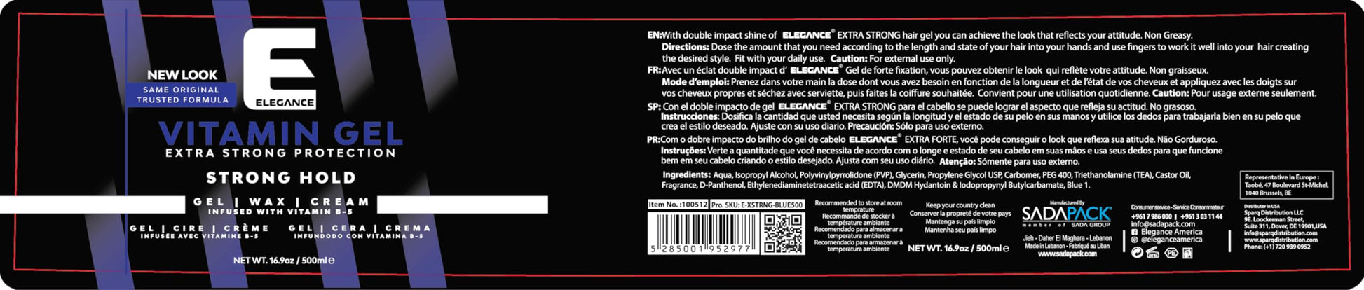Elegance Vitamin Gel, 16.9 Oz, Infused with Vitamin Pro-VB-5, Strong Hold Gel, Maximum Hair Protection and Natural Long Lasting Shine