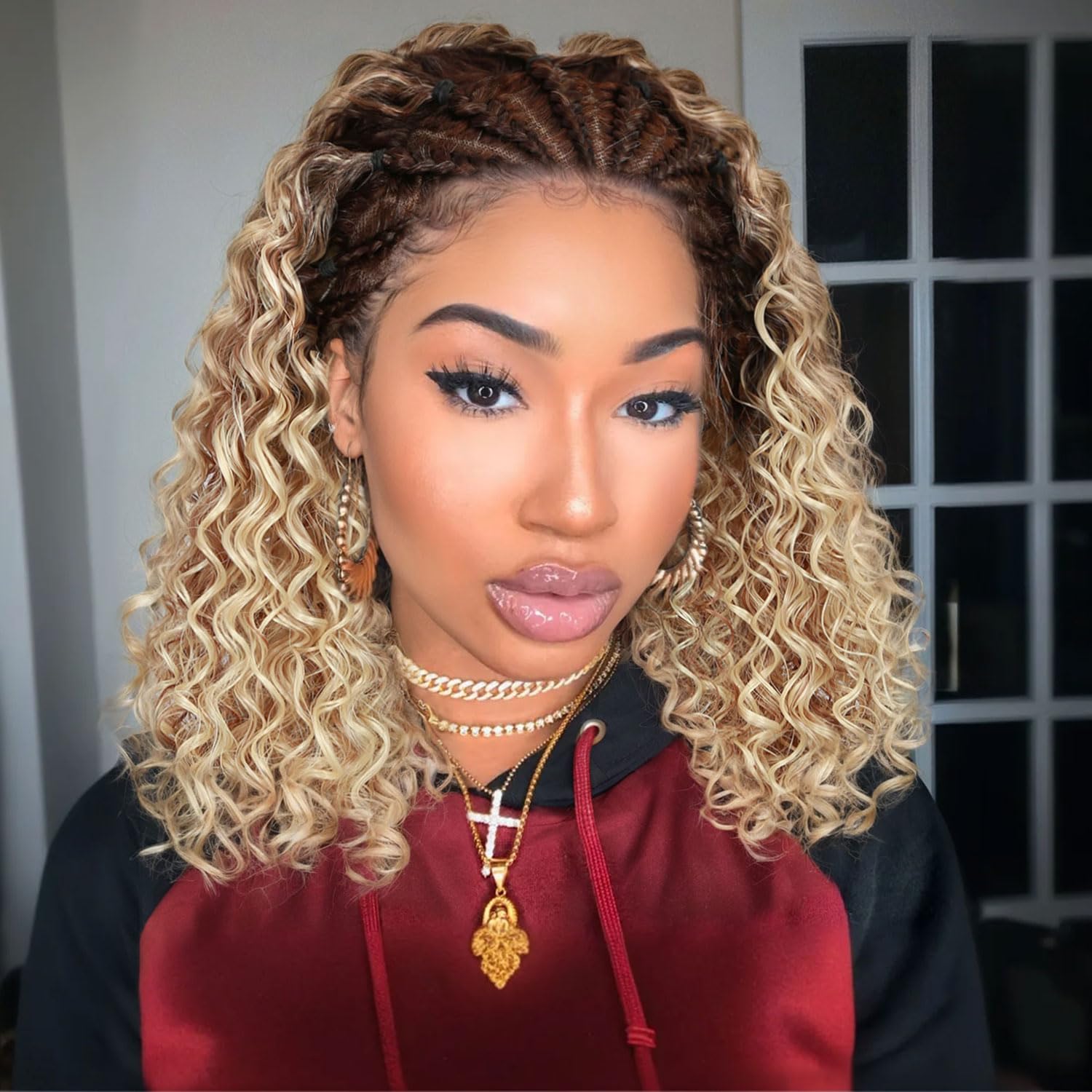 - Intricate Braiding: The cornrow braids are expertly crafted with curly textured hair for an authentic look