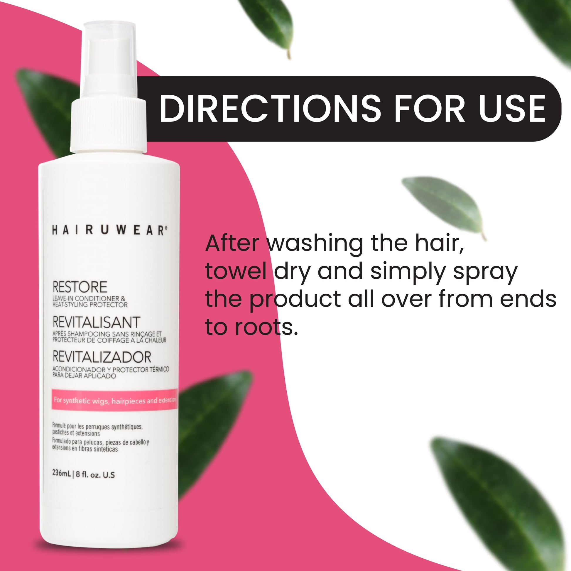 HairUWear"Restore" Leave in Conditioner & Heat Styler Protector for Wigs & Hair Extensions 8 oz.