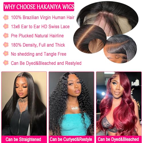 Hakaniya 13x6 Body Wave Lace Front Wigs Human Hair Pre Plucked HD Transparent Lace Frontal Wigs Human Hair 180% Density Glueless Wigs Human Hair with Baby Hair for Women 26 Inch