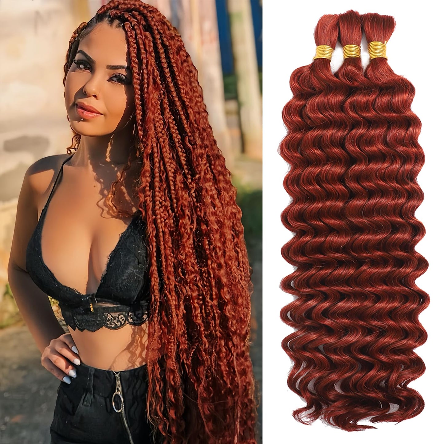 Human Braiding Hair for Boho Braids Human Hair 3 Bundles/Pack 110g 20 Inch Deep Wave Bulk Human Hair for Braiding Curly Knotless 12A Brazilian Virgin Copper