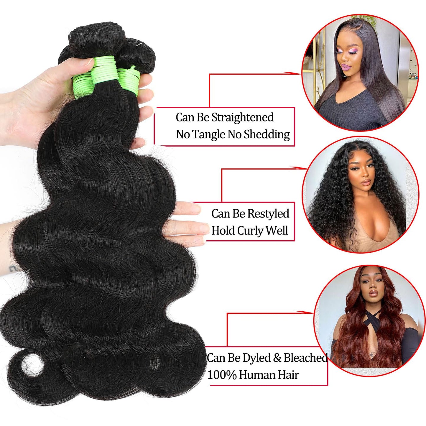 - Body Wave Bundles Human Hair Material: 100% Unprocessed Brazilian Body Wave Human Hair 3 Bundles from Young Donors Directly, 12A Top Grade ,Tight &Soft &Silky, Clean & Healthy.