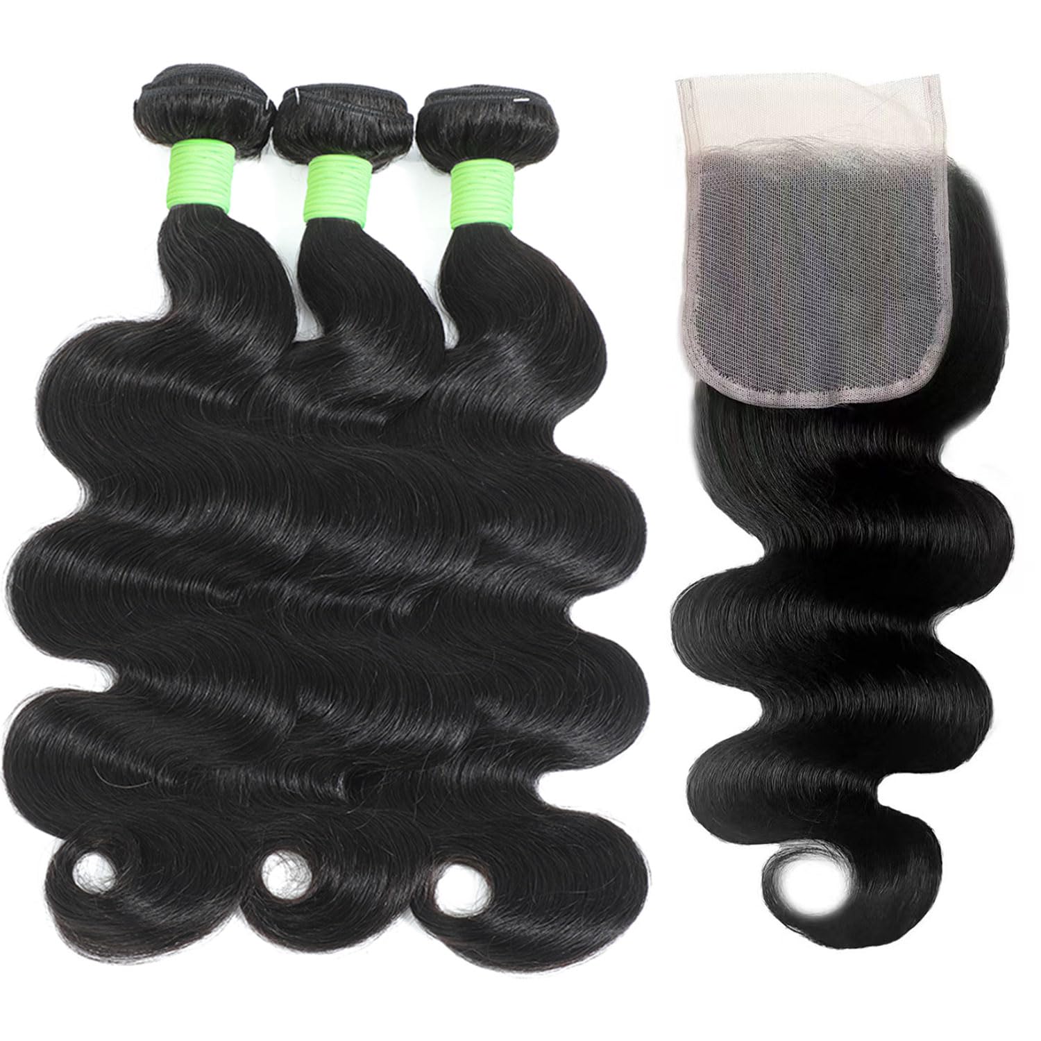 - Body Wave Hair Quality: 1B Natural Black Bundles with Closure. Hair Weft is 100(+/-5)g/bundle, Lace Closure is 20-40g Depending on the Length. 150% Density 4×4 Free Part Closure, Hair is Soft, Full and ThickDouble Weft,Full & Thick ,No Tangle & Shedding,Can be Straightened,Curled, Bleached and Restyled as Your Own Hair.