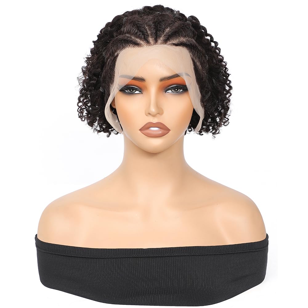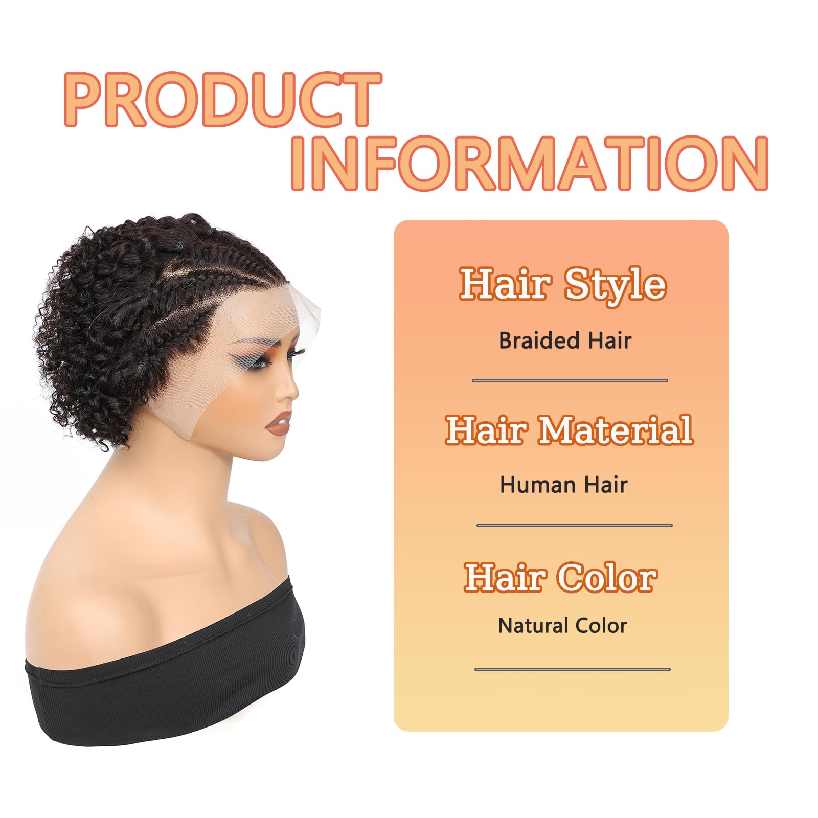 Inghood Braided Lace Front Wigs For Black Women Braided Curly Human Hair Wigs Fully Handmade Braided Wig Pixie Cut Wig 13x4 Lace Front Wigs Human Hair Curly Bob Wig Human Hair (Natural Color)
