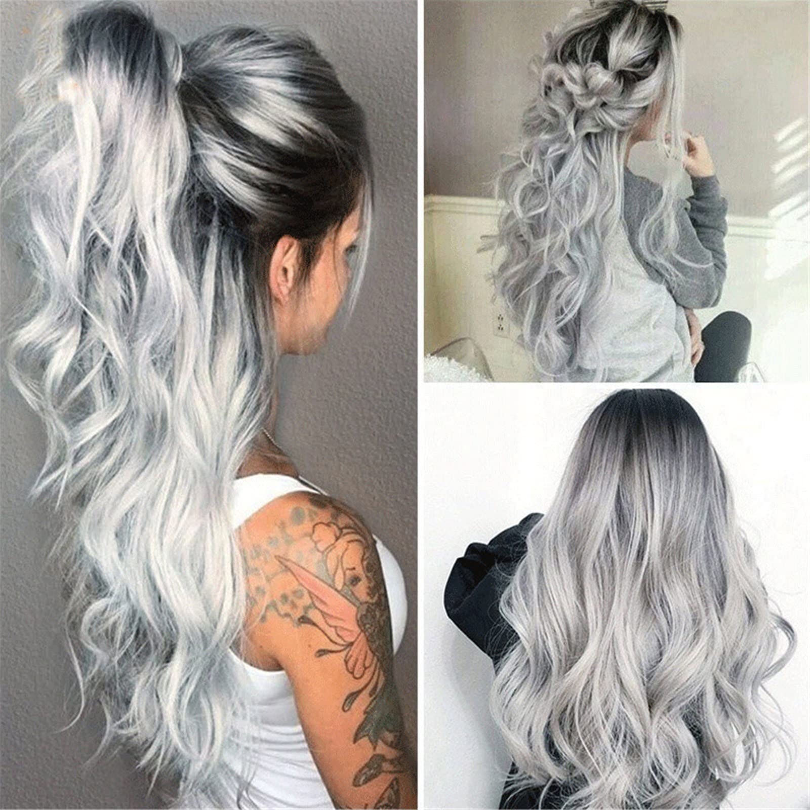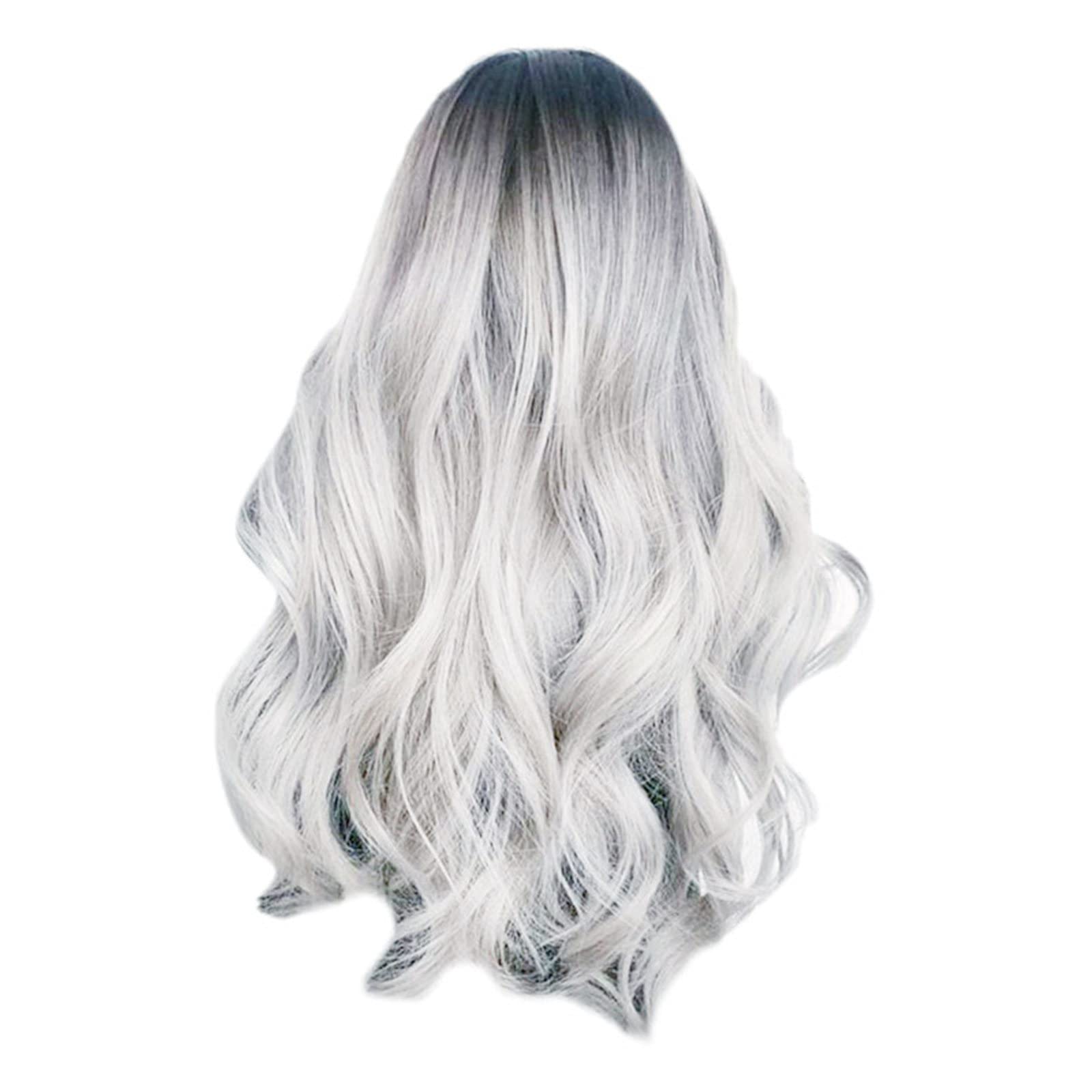 Details: It's A Wig Wigs for Women Full Head Cover Ladies Gray Gradient High Temperature Silk Hair Set Long Big Wave Curly Hair In The Middle Part Dyeing Wig Lace Front for Women