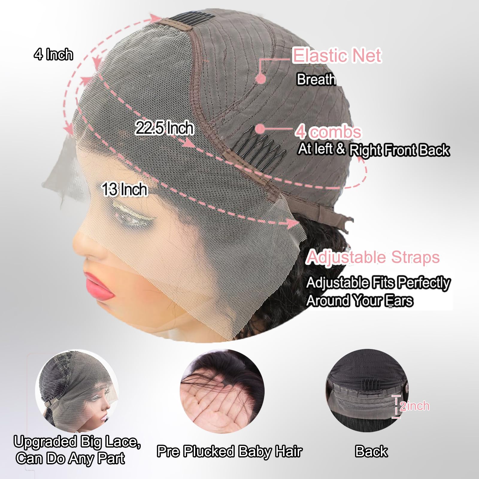 - HD Transparent Frontal:13x4 HD transparent frontal wig, Swiss lace technology, hand-crafted technology. The high-definition lace seamlessly blends with your skin, creating a virtually undetectable hairline,180% density human hair wigs and breathable & durable lace material make it more comfortable.