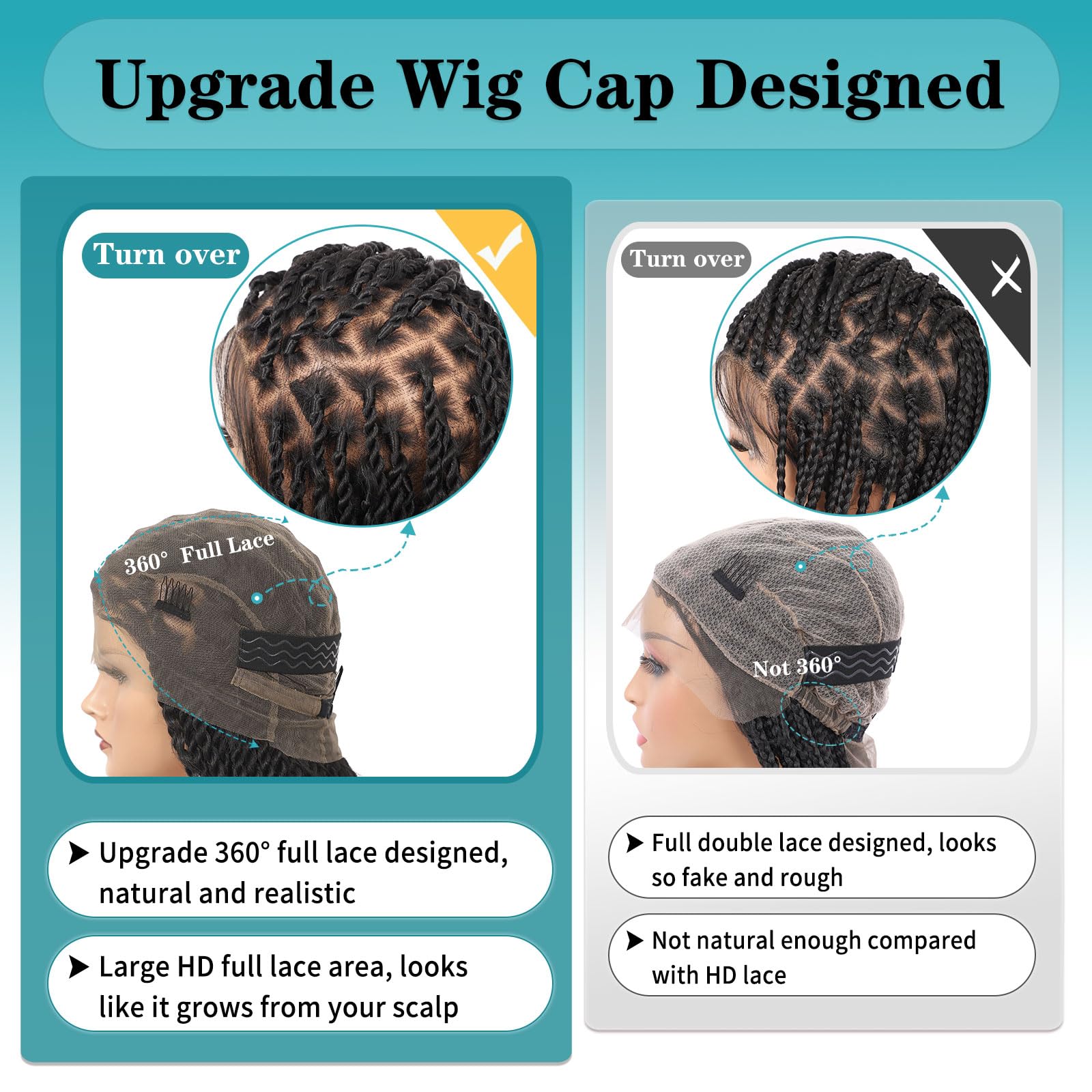 - NATURAL LOOKING: Our HD full lace Boho braided wig will give you a hairstyle so real that people won't spot it unless you tell them. Because the baby hair on the lace front braided wig makes a natural overhang on your hairline, it will create an superior realistic look with a seamless and natural hairline transition. The incredible lace of braided wigs suits all skin tones, the tones of your scalp will show through and the knotless box braids will look as if they were made from your own hair