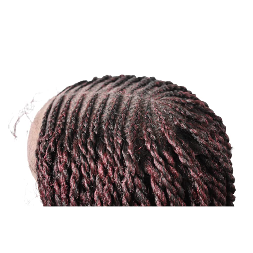 Knotless Cornrow Braided Wig For Black Women Soft Lace Micro Braiding Wig Baby Hair Box Braids Wigs Light Weight Curly Synthetic Braid Wig For Women (#1B/99JT-#Black/Deep WineT)