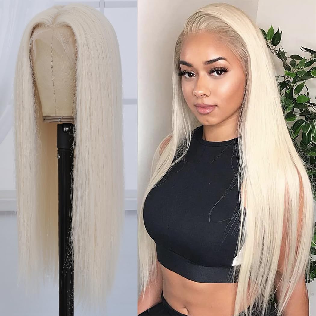 Koreyo Lace Front Wig Pre Plucked 13x4 HD Glueless Honey Blonde Lace Front Wig for Women Natural Looking Synthetic Heat Resistant Fiber Lace Wig (26 Inch) (Platinum Blonde)