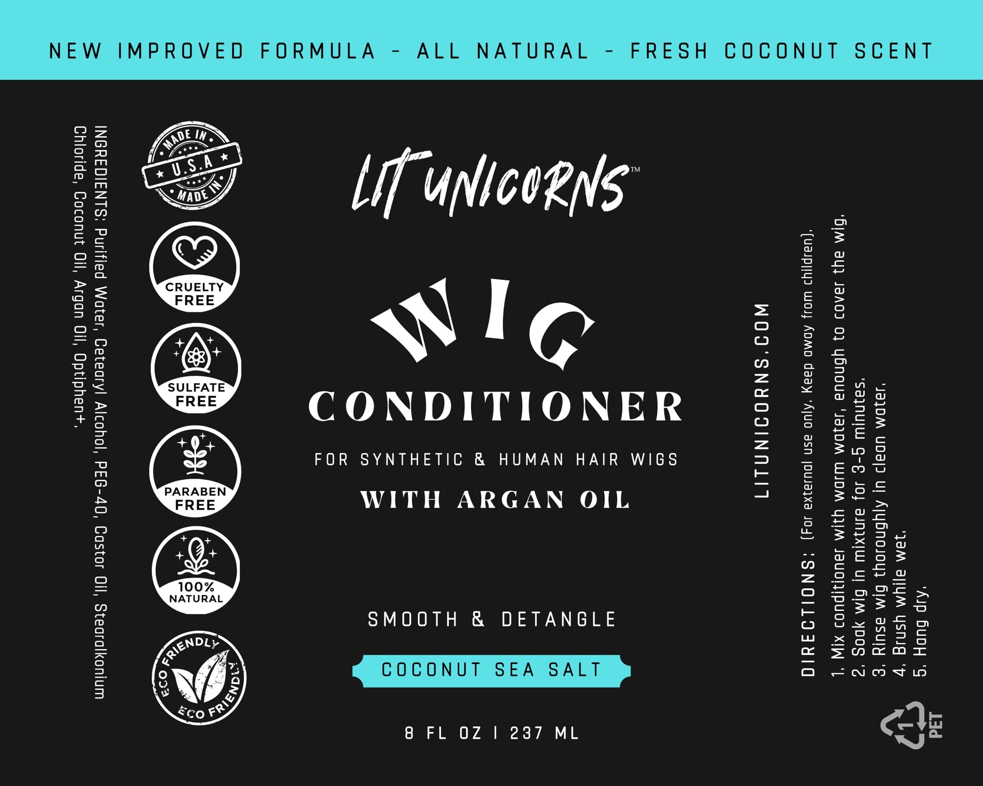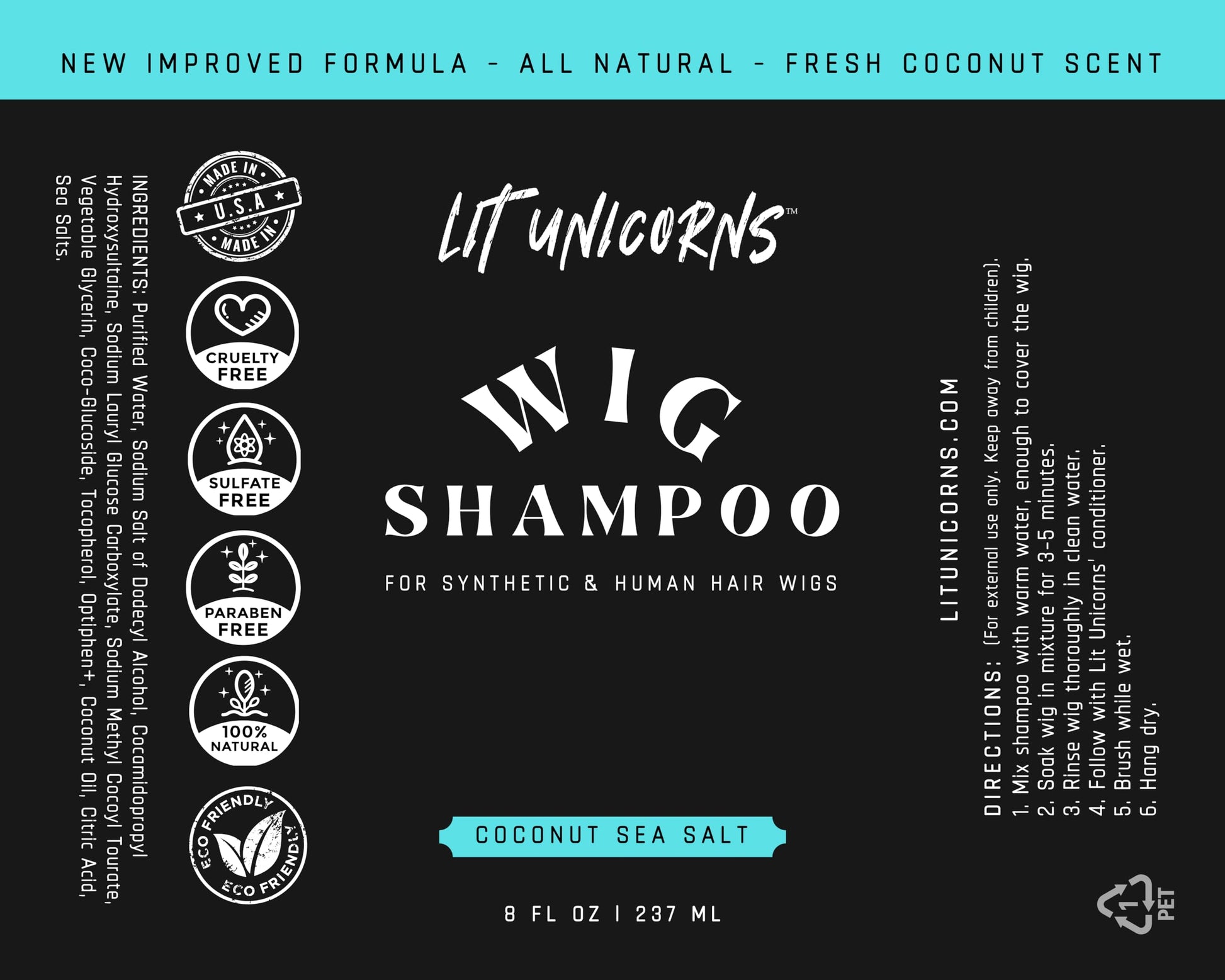 LIT UNICORNS All Natural Wig Shampoo & Conditioner Set for Human Hair and Synthetic Wigs. Clean | Detangle | Soften. Keep Your Wig Fresh - Coconut Scent (16oz Flip-Top)