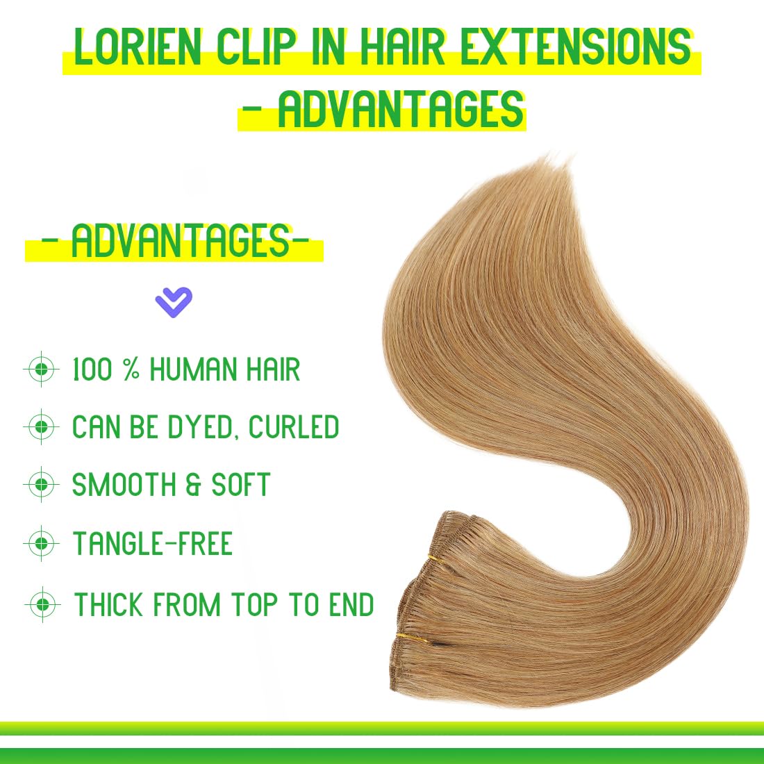 LORIEN Clip in Hair Extensions Real Human Hair, 24 Inch 120g, 27 Honey Blonde, Clip in 100% Brazilian Remy Human Hair Extensions 8pcs Per Set with 18 Clips Double Weft