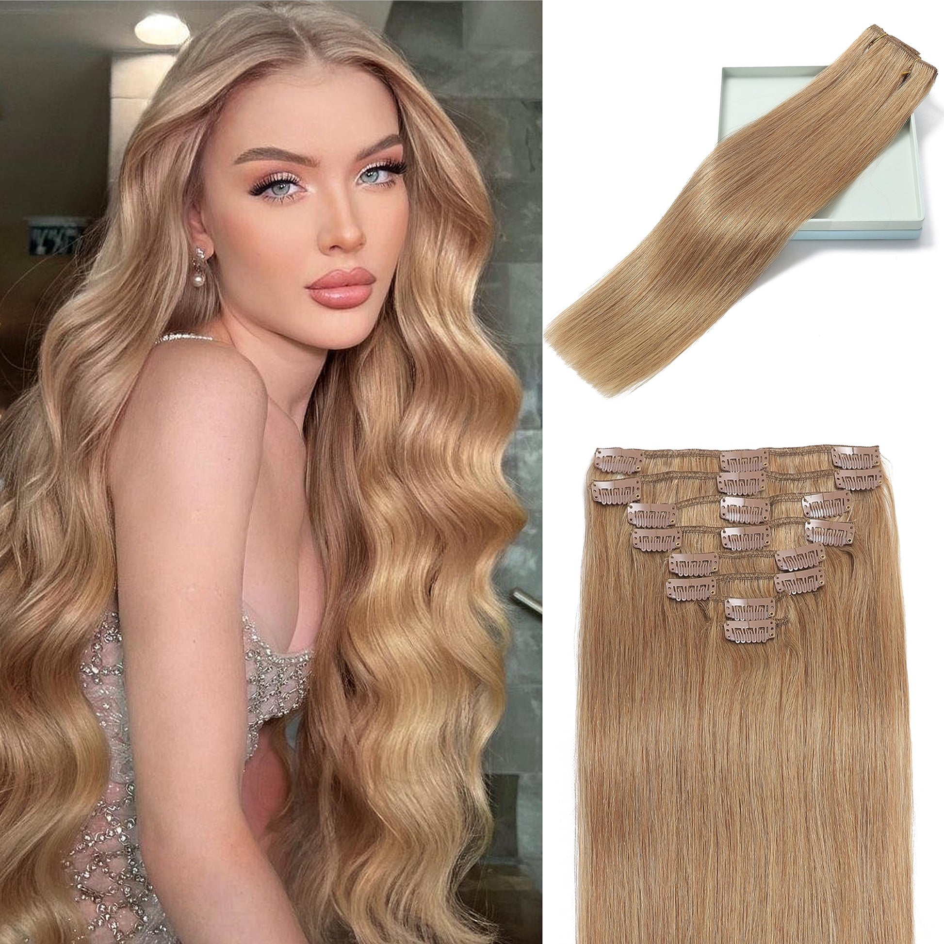 - 【Anti-Shedding】: Blonde clip in hair extensions is used Double Weft, which is more durable and not falls out. Clips are covered with a layer of soft rubber to carefully protect your scalp and hair. There is no unsightly lines of separation.