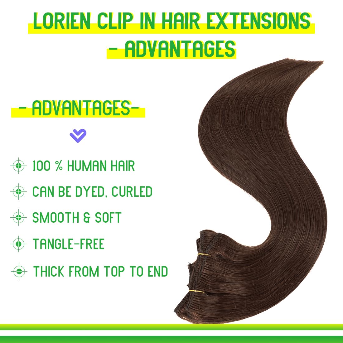 LORIEN Clip in Hair Extensions Real Human Hair, 24 Inch 120g, 4 Dark Brown, Clip in 100% Brazilian Remy Human Hair Extensions 8pcs Per Set with 18 Clips Double Weft