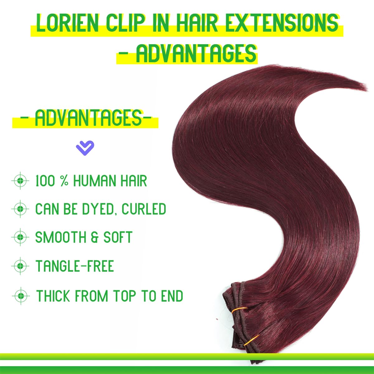 LORIEN Clip in Hair Extensions Real Human Hair, 24 Inch 120g, 99J Burgundy, Clip in 100% Brazilian Remy Human Hair Extensions 8pcs Per Set with 18 Clips Double Weft