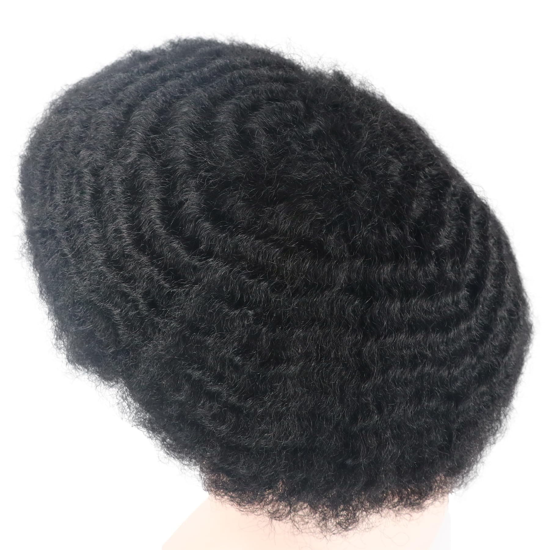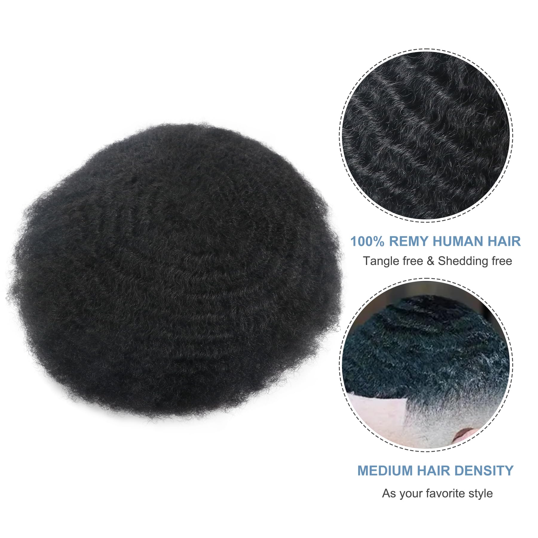 lumeng Afro Mens Toupee Wave Black Mans Wigs Male Hair Unit 8MM Kinky Weaves European Human Hair Pieces Replacemnt System 10x8 Skin PU Hair Prosthesis Units Patch Implant for Men #1 Jet Black
