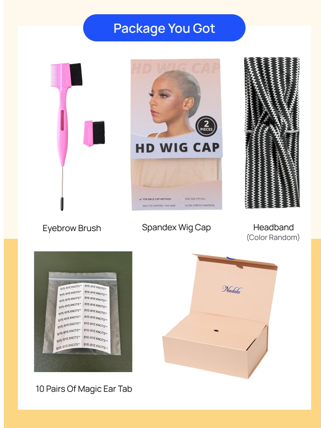 3.Nadula 13x4 bye bye knots pre everything glueless wig allow you to wear your own real scalp in your parting area. More Natural, Easier To Install, Quicker To Put On and Take Off Everyday.