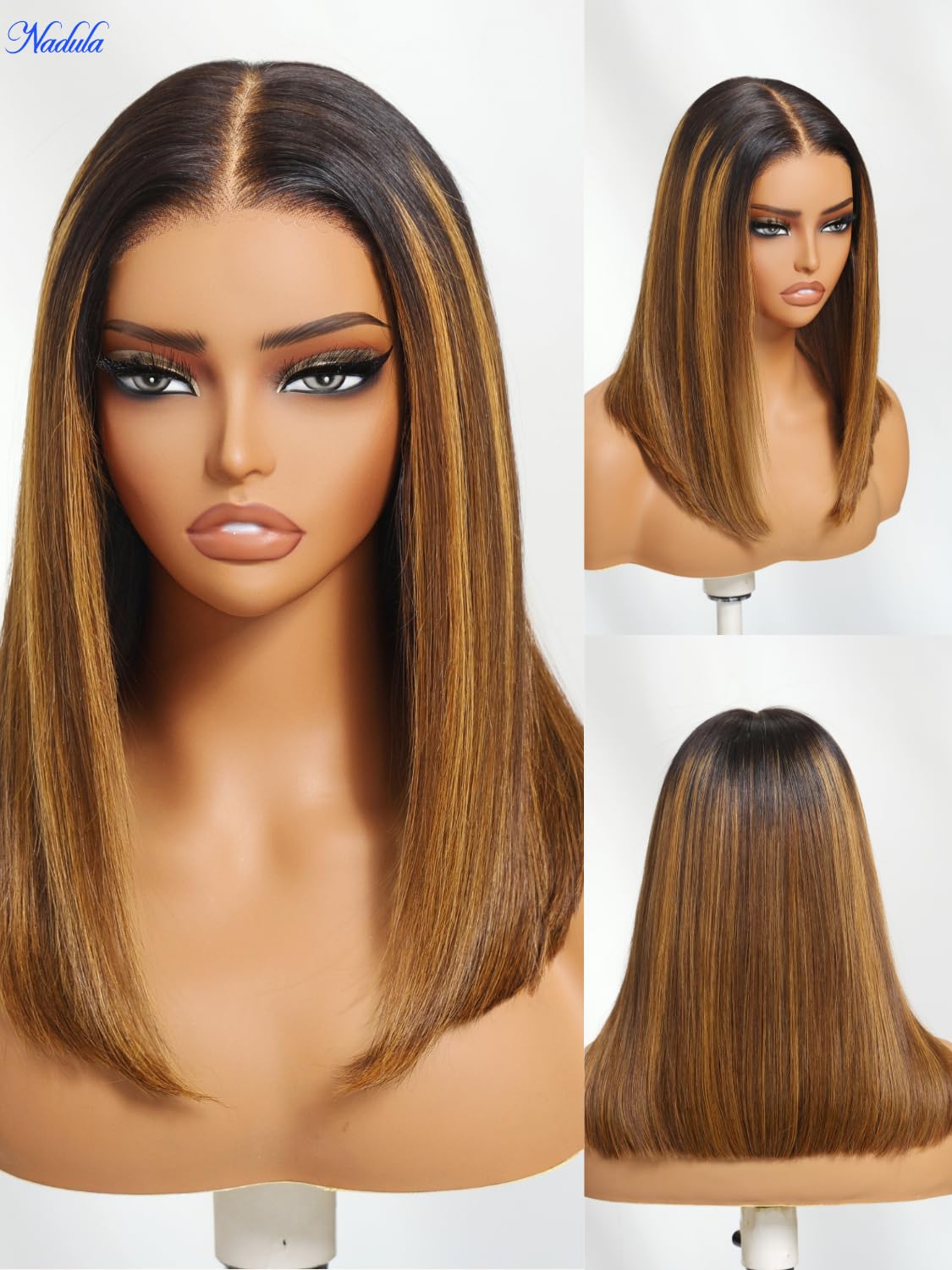 - 【Highlight Blonde Glueless Bob Wig – Raw Virgin Hair, Ultra Soft】Made from premium raw virgin human hair,Nadula 13x4 Bye Bye Knots Honey Blonde Brown Highlight Piano Straight Bob Wig is ultra-soft, tangle-free, and shed-resistant. Easily dye, bleach, perm, or style it like your own hair—natural look, endless possibilities!