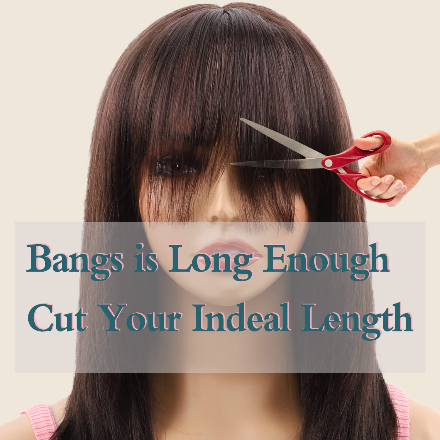 NATAGHAIR Long Brown Wig with Bangs Human Hair - Straight Wig 100% Virgin Remy Hair Curly Wigs for White Black Women Natural Looking Hair Replacement Wigs