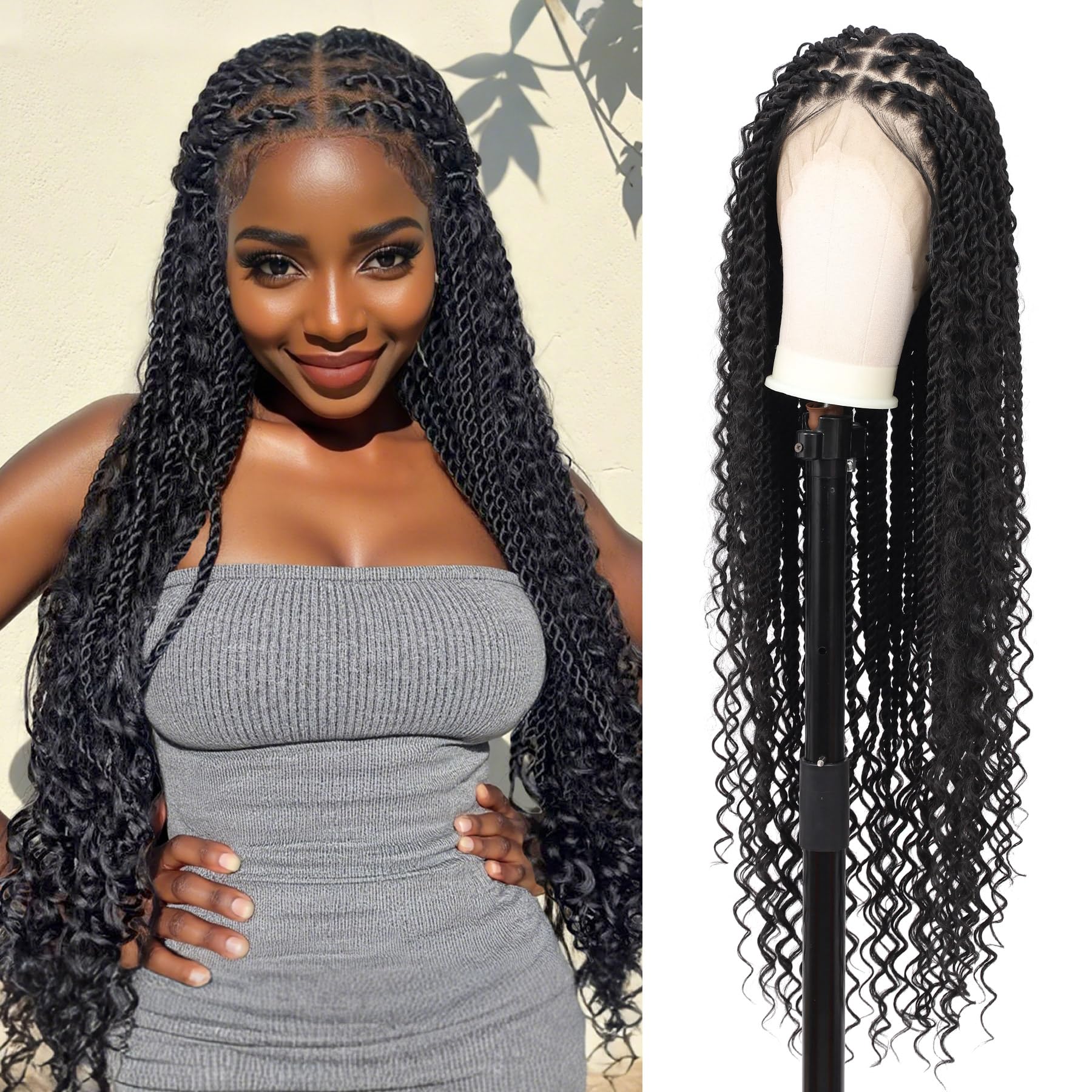 - 【Braided Twist Wig with Boho Curls】Are you looking for a charming full lace twist braid wig?Lace front braid wig consists of twist braids which has boho curly design, which will be your best choice.This is the most popular and fashion boho twist braid wig currently!No matter what occasions you appear,you wear full lace knotless twist braid wig making you the focus of audience,accept the praise of everyone,and make you a confident and fashionable queen