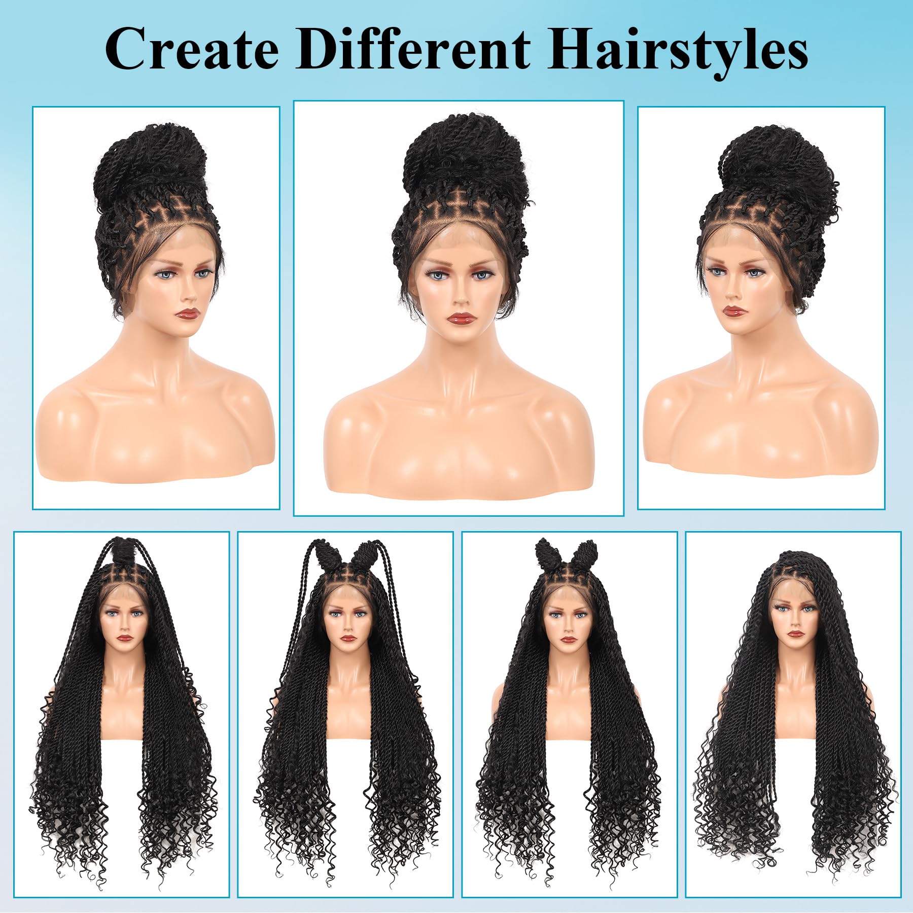 - 【Create Your Hairstyle】Boho braids wig length is 36inches,braids are clean and neat that twist braided wig is very tight and no knot.According to your preference,you can create playful and cute hairstyles such as high ponytails,buns,double buns and so on,to show your personalized.Braid wig with curls can not only easily create a variety of different hairstyles,save your precious time,but also allow you to maintain beauty and confidence on various occasions