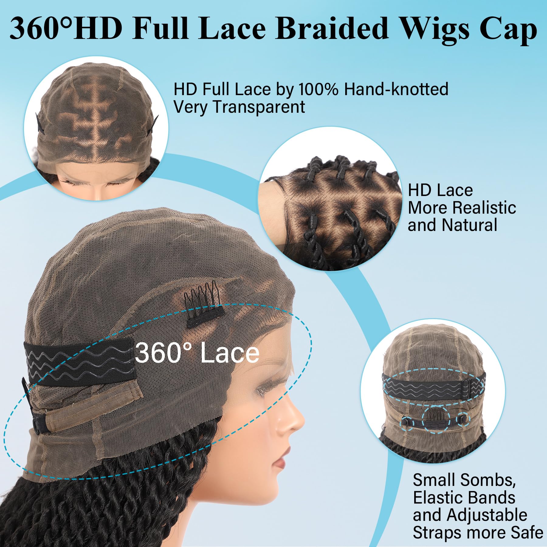 Olymei 360° HD Full Lace Braided Wigs for Women Knotless Boho Braided Wigs Twisted Braid Lace Wig with Baby Premium Synthetic Blended Braid Lace Front Wig Black 36"