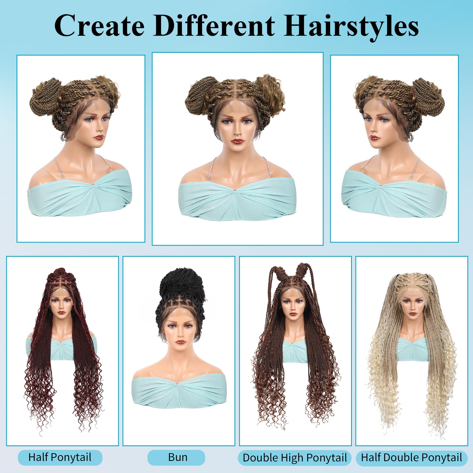 - 【Create Your Hairstyle】Boho braids wig length is 36inches, braids are clean and neat that twist braided wig is very tight and no knot. According to your preference, you can create playful and cute hairstyles, such as high ponytails,buns,double buns and so on to show your personalized. Braid wig with curls not only easily create a variety of different hairstyles, save your precious time, but also allow you to maintain beauty and confidence on various occasions