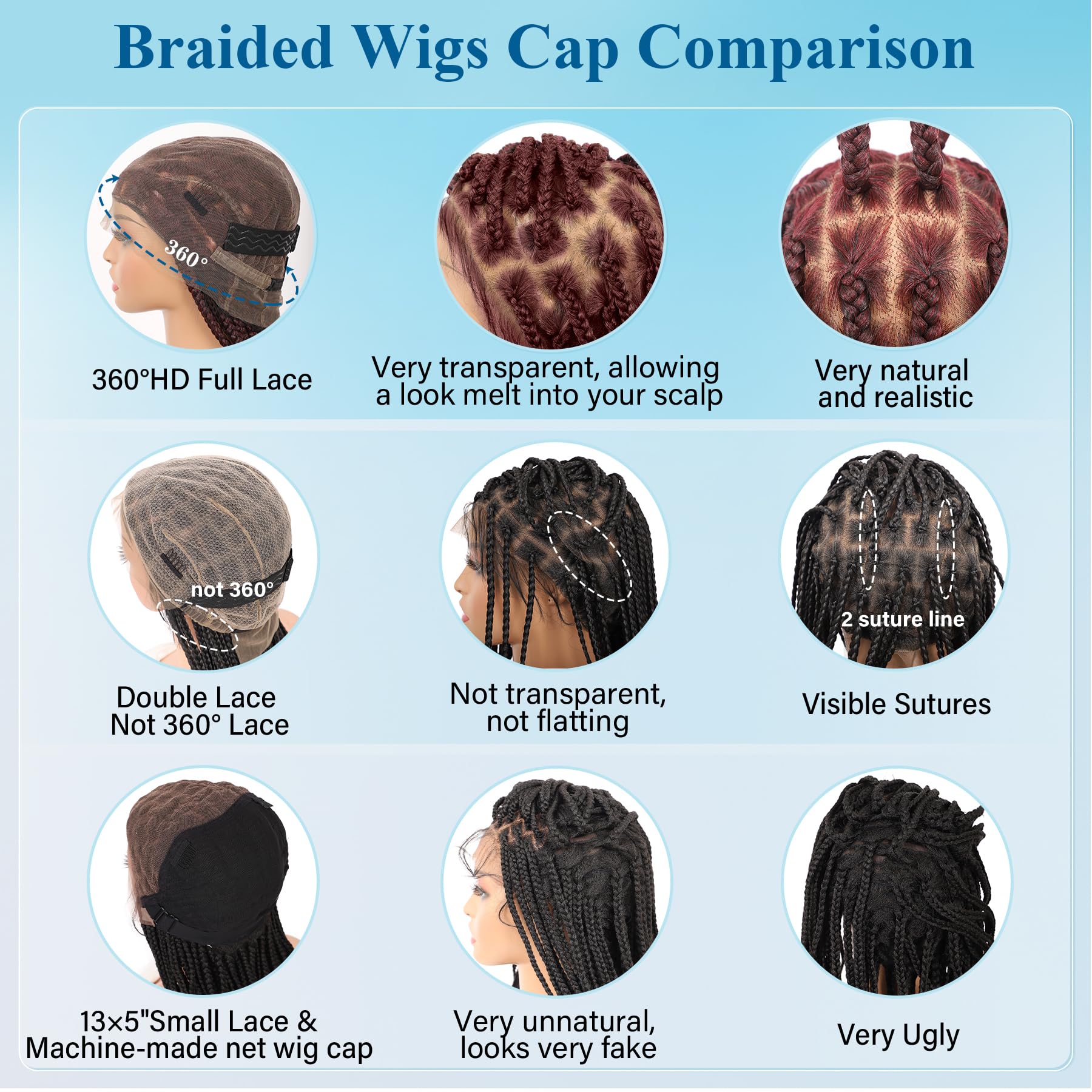 - 【Wide Occasions】The realistic knotless box braid wig be installed easily, not only save your precious time, but also allow you to maintain beauty and confidence on various occasions. The braids lace front wig can be worn in many occasions, daily life, parties, stage performances, concerts, fashion matching, etc. HD lace braidable wigs not only increase your beauty and confidence, but also serve a specific purpose in specific occasions