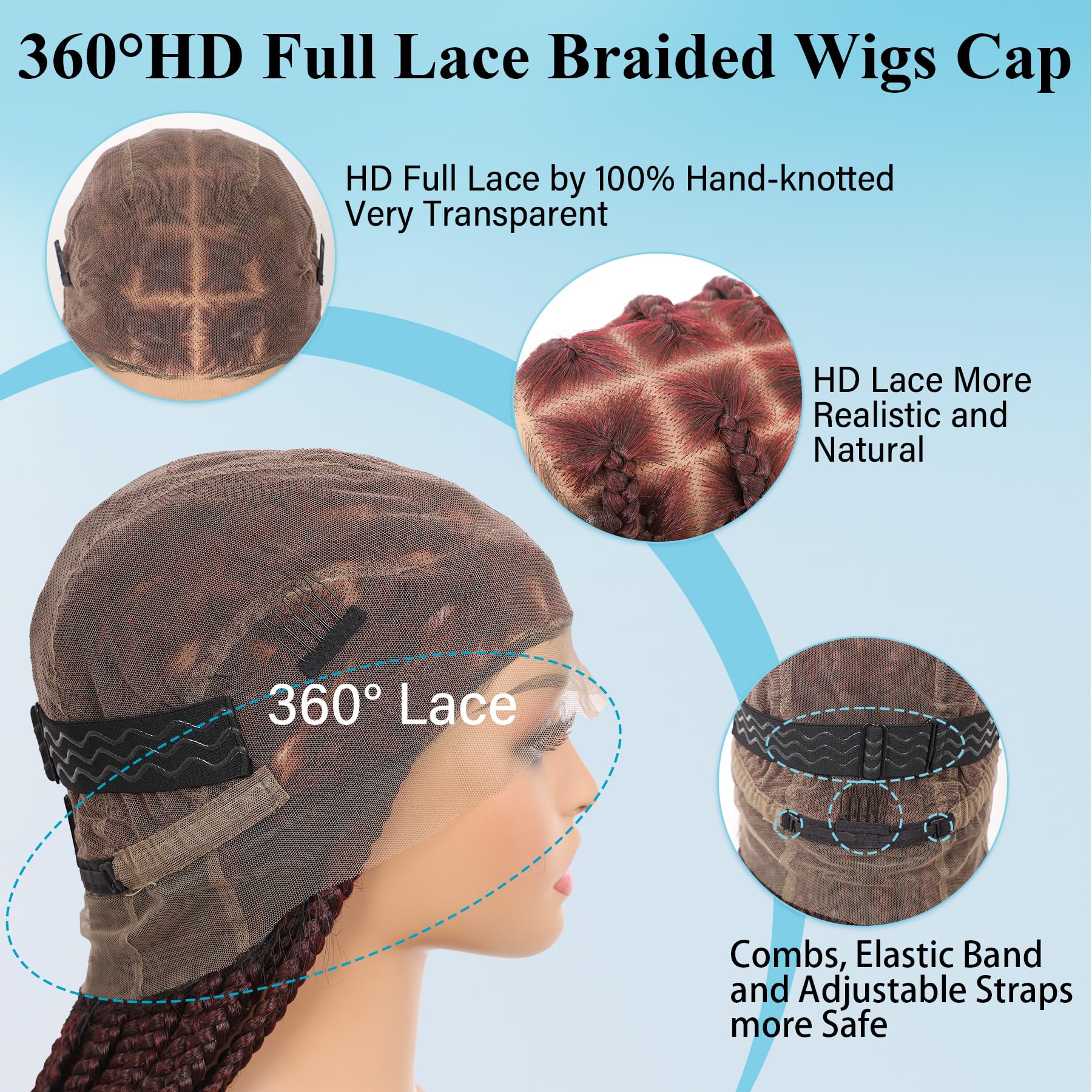 - 【Excellent Construction】The knotless box braided wig with baby hair weighs 0.98 pounds and the length is 36 inches. Braided lace frontal wigs cap is circumference 21.5-22", ear to ear 13.5"-13.75", front to back 14"-14.5". This wig braid cap also comes with adjustable straps and buckles to ensure a secure fit. Lightweight and comfortable to wear! Do not worry about human hair blended braided wigs move or fall off. Such a pretty braids lace frontal wig, don't heasitate, just buy it now