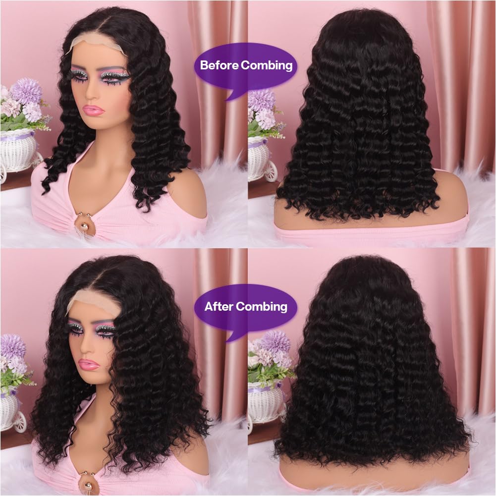 - Deep Wave BOB Wig Human Hair Material:The 5x5 Deep Wave Closure Wig Human Hair Made Of Unprocessed 10A Brazilian Virgin Hair,100% Human Hair,Soft & Pure,180 Density Virgin Hair Wigs,Full & Thick,No Shedding & No Tangle,Can Be Dyed & Bleached