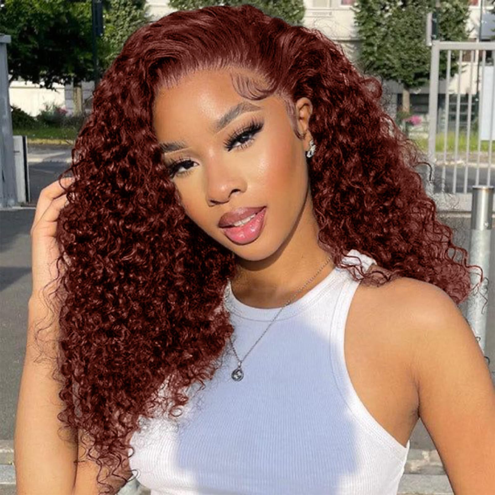 Punmasa 18 Inch Reddish Brown Curly Bob Wig Human Hair 13x6 Frontal Lace Wig 200% Density Lace Front Wigs Human Hair Pre Plucked Bob Wigs for Black Women 33#