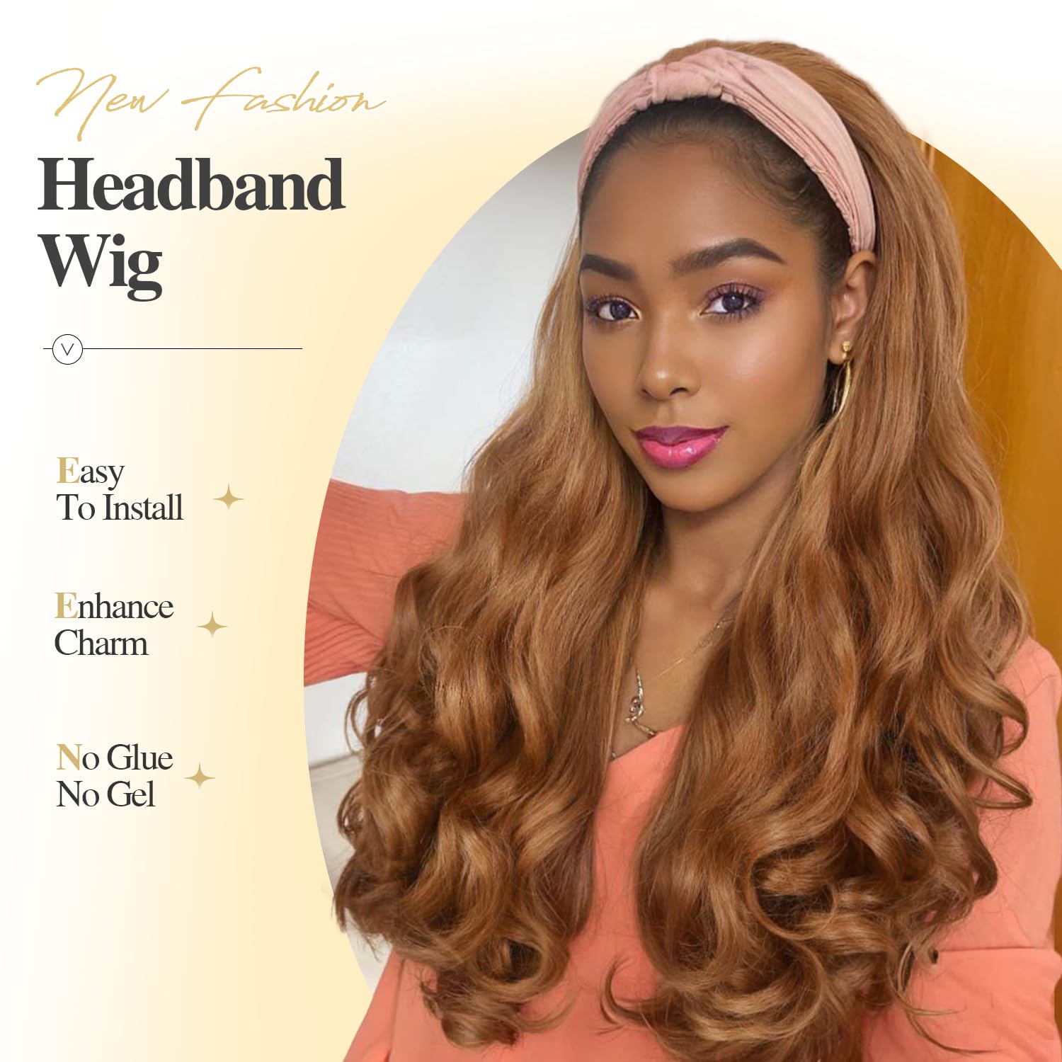- Wig Advantages:New glueless headband wig, designed to show your natural hairline, magic tape design makes it easy to wear, put on and go easily, only 2 minuates! Convenient with no lace and no glue, protect your edges well, different styles according to your mood