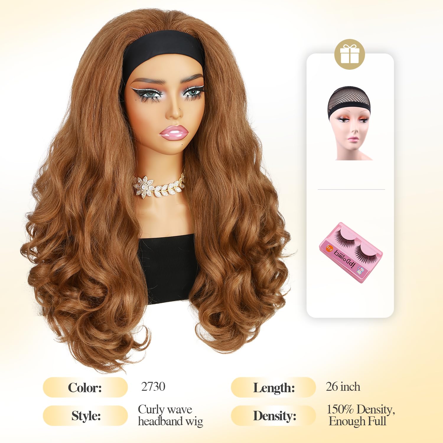 - Fashion & New Style: This headband wig innovates in hair curvature while retaining the classic hairstyle.Wig curls are long-lasting and natural,silky and soft, tangle-free, no shedding. Elastic ice silk headband is soft and comfortable, you can show your own hairline, you can also do baby hair, or make a ponytail or bun, which will make you get different beauty