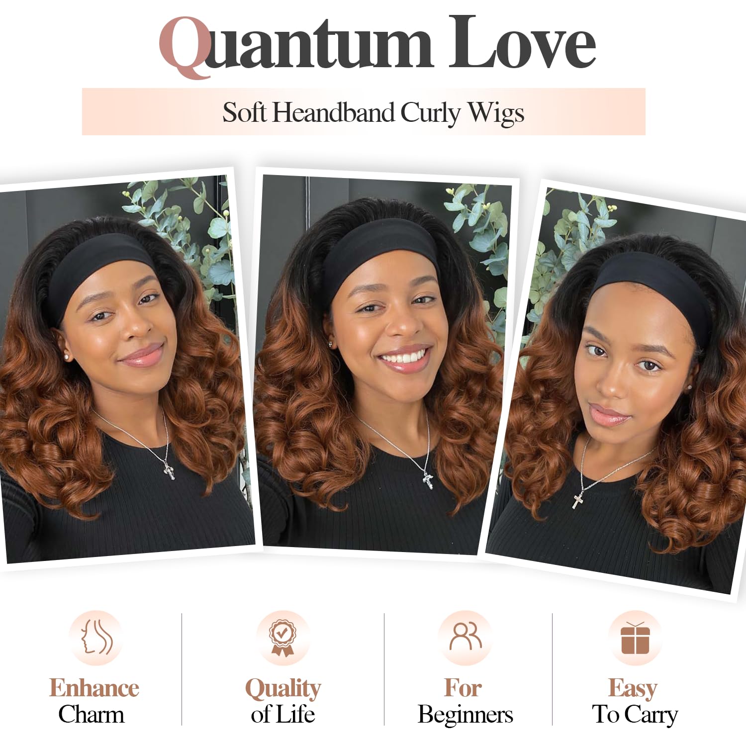 Quantum Love Yaki Curly Headband Wigs for Black Women Kinky Straight Ombre Brown Headband Curly Ends Synthetic Wear and Go Glueless half Wig with Headbands Attached
