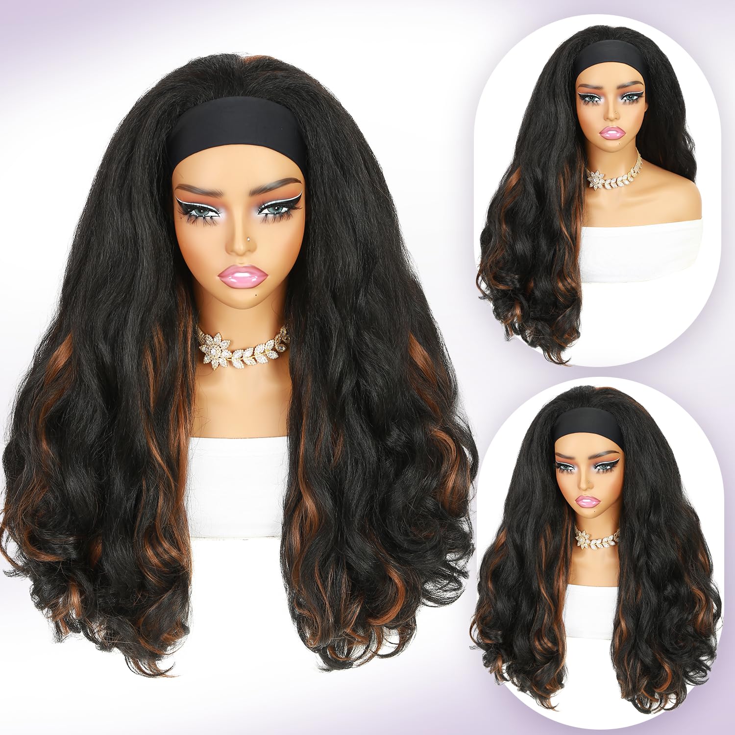 - Wig Advantages:New glueless headband wig, designed to show your natural hairline, magic tape design makes it easy to wear, put on and go easily, only 2 minuates! Convenient with no lace and no glue, protect your edges well, different styles according to your mood