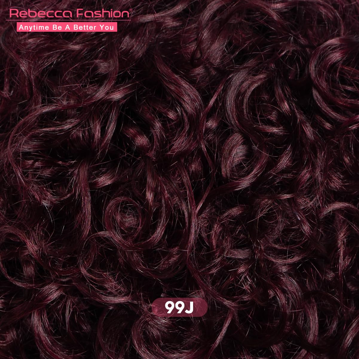 Rebecca Fashion 99J Burgundy Short Curly Human Hair Wigs for Black Women Cute Curly Bob Wig Side Part Non Lace Glueless Wigs Brazilian Remy Natural Looking