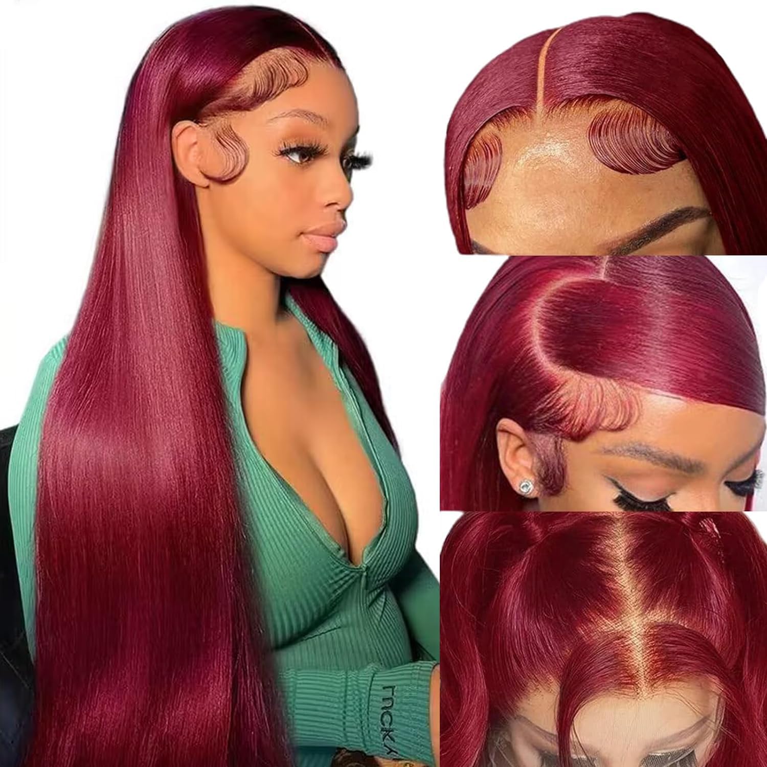 - 【Red Lace Front Wigs Human Hair Quality 】99J Burgundy Straight Lace Front Wig Human Hair, Wine Red Colored, Pre Plucked with Baby Hair, Makes the Hair More Natural, Physical High Temperature Shaping, Does Not Contain Any Chemical Substances, More Comfortable to Wear by Hand Sewing, Does Not Fall Off, No Tangles and No Smell, It Can be Curled and Modified, Hot Dyed.