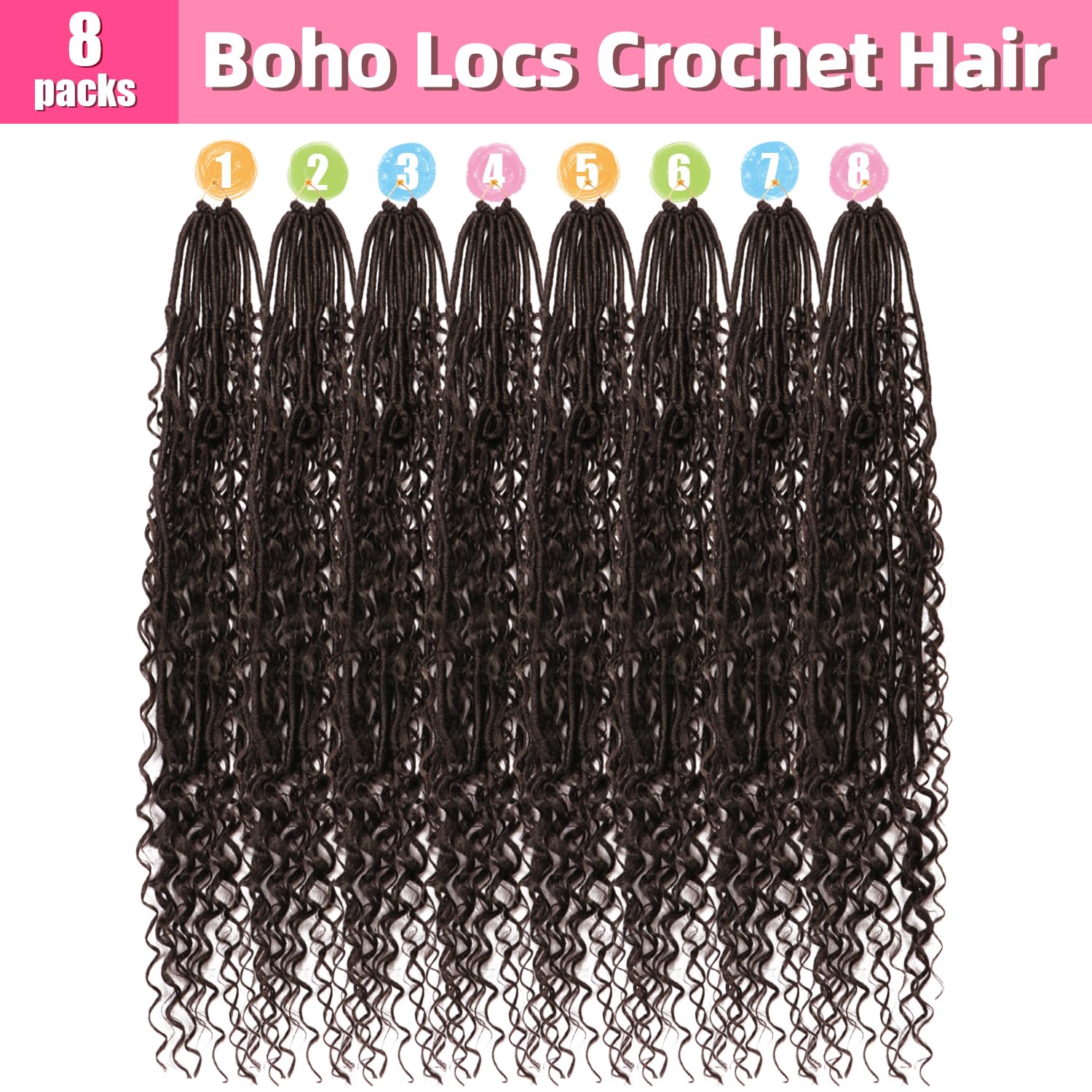 Soft Boho Locs Crochet Hair for Black Women-30 Inch 8 Packs Goddess Faux Locs Crochet Human Hair Feeling Pre Looped with Curly Ends (#2, 30 Inch(Pack of 8))
