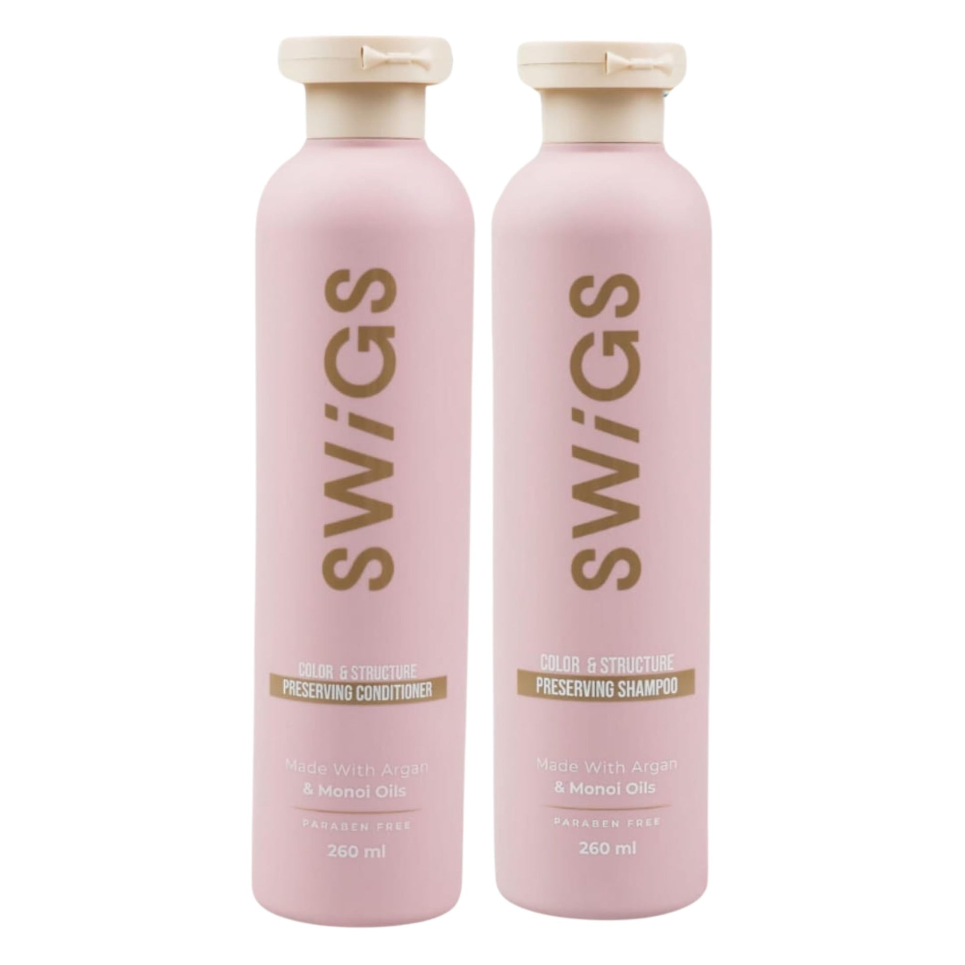 - SWIGS HIGH-QUALITY SHAMPOO & CONDITIONER: made with premium ingredients, our swigs shampoo & conditioner set is perfect for use on human hair, synthetic wigs, extensions, Remi hair, weaving hair, you name it! With regular use, our products will help to extend the life of your wig, keeping it looking healthy, shiny, and beautiful for months to come.
