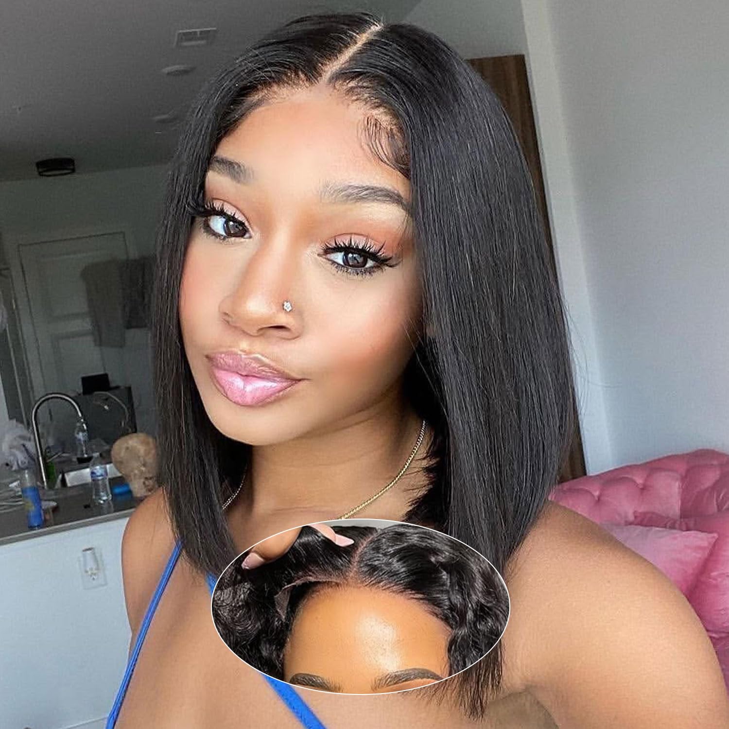 - Wear And Go Glueless Bob Wig: 5x5 Lace Closure Wigs Human Hair,Hd Lace Front Wigs Human Hair, True To Length, Can Be Made Middle Part Or Side Part As Your Need,30 Seconds Install Glueless Wigs For Beginners Friendly, Without Any Skill.