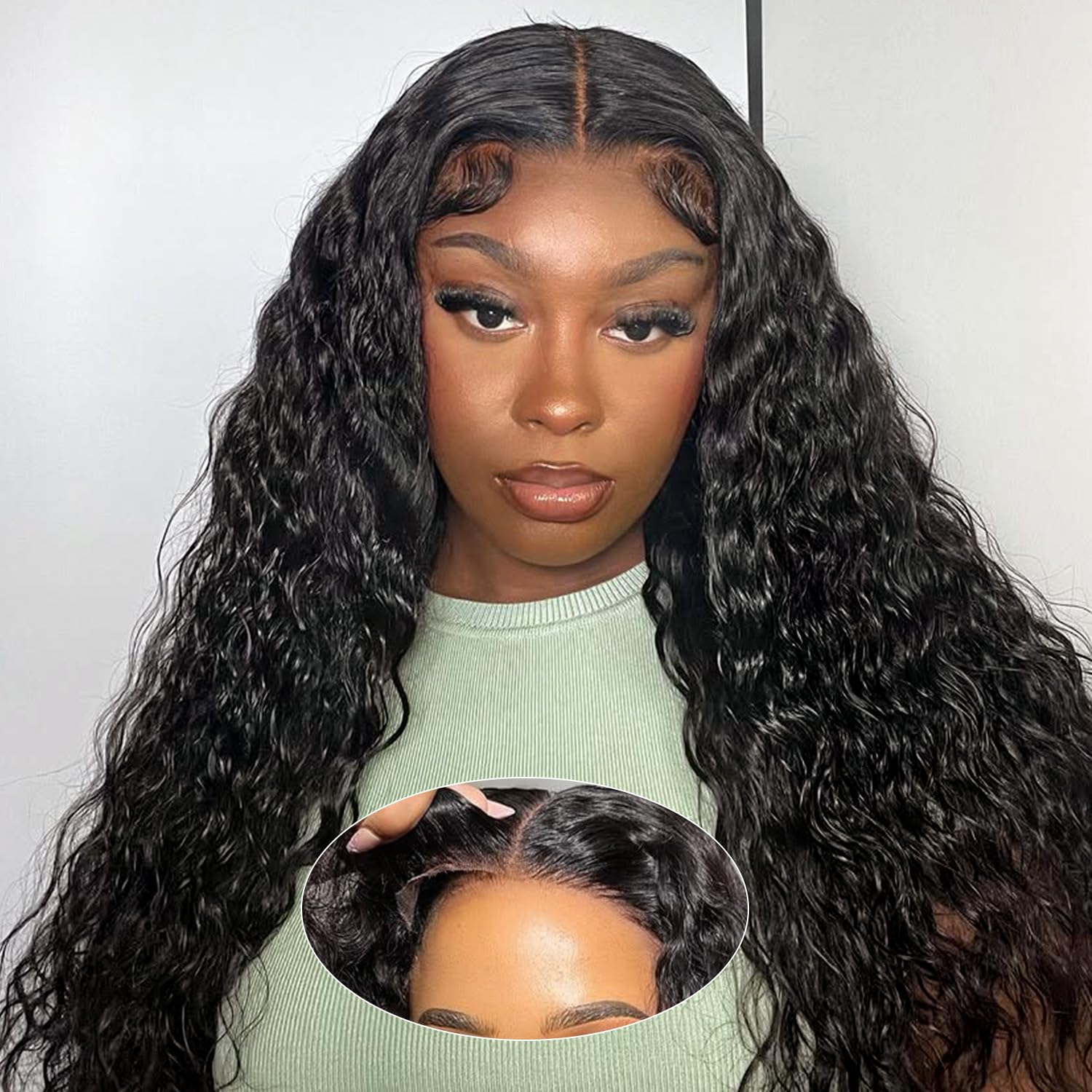 UCUVIC Wear And Go Glueless Wigs Human Hair Pre Plucked Pre Cut Curly 5x5 Water Wave Bob Wig Human Hair Lace Front Closure Wigs For Black Women 200 Density Curly Wig Glueless Wear And Go Black 18 Inch